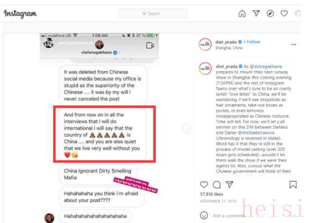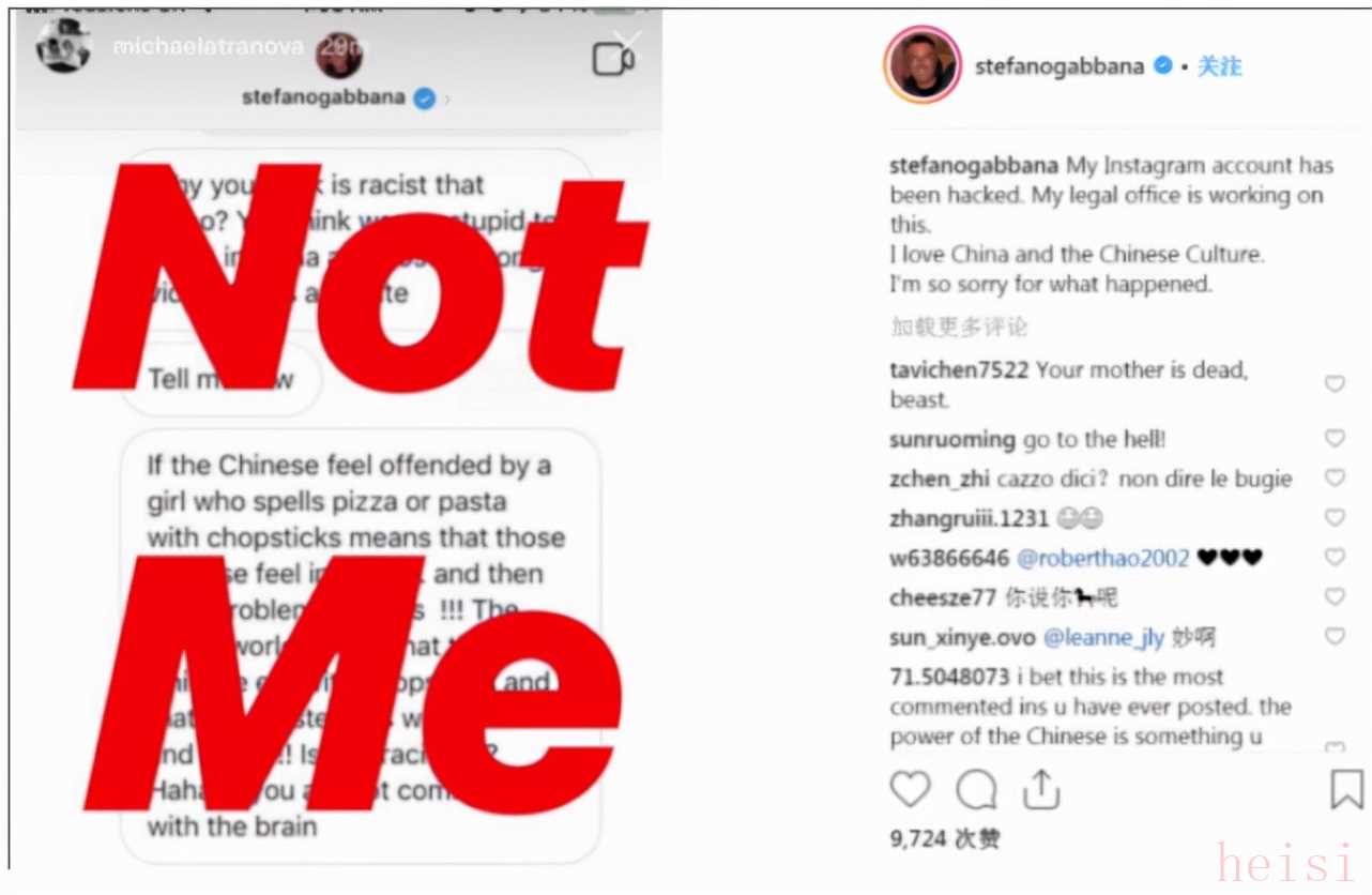 不過,當(dāng)時真正導(dǎo)致“杜嘉班納”差點死亡的核心原因,是該公司的一位創(chuàng)始人兼高管在回應(yīng)一位網(wǎng)民問他為何要拍出這么低級的廣告時,竟對這名網(wǎng)民罵出了“中國是個屎一般的國家”“中國是無知骯臟惡臭的黑幫”等內(nèi)容。而在引起全網(wǎng)圍觀后,這名敢做不敢當(dāng)?shù)母吖苡忠欢热鲋e稱自己“被盜號了”。