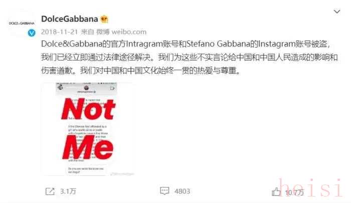 2018年11月23日,杜嘉班納創(chuàng)始人發(fā)布視頻道歉,并用中文說“對(duì)不起”。