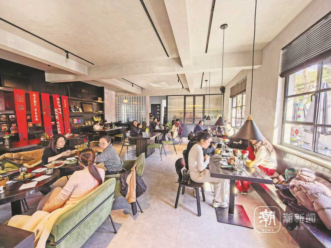 年輕人越來(lái)越多,村子里的配套商業(yè)也火了起來(lái)。湖南妹子羅丹鳳原本是服裝設(shè)計(jì)師,在市區(qū)開(kāi)了9年服裝店。來(lái)到安山村考察后,她將服裝店和咖啡館、餐飲融合在一起,開(kāi)了間“是啡咖啡館”。這家咖啡館的招牌牛肉面肉片大、分量足,服裝設(shè)計(jì)感強(qiáng)又價(jià)格實(shí)惠,吸引了不少人專程來(lái)打卡,才半年就回了本,去年還在東錢(qián)湖開(kāi)了分店。記者到訪時(shí)是個(gè)工作日,但羅丹鳳的咖啡館內(nèi)外十幾張桌子都坐滿了人。