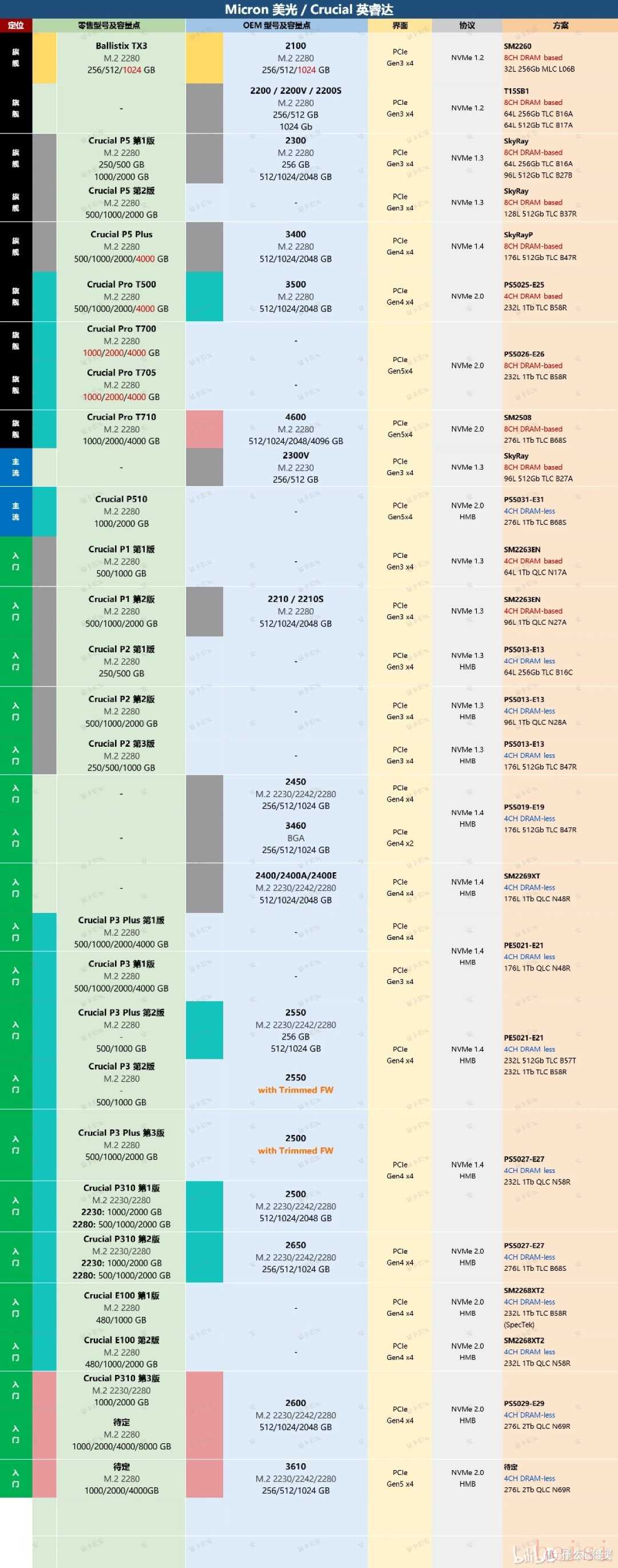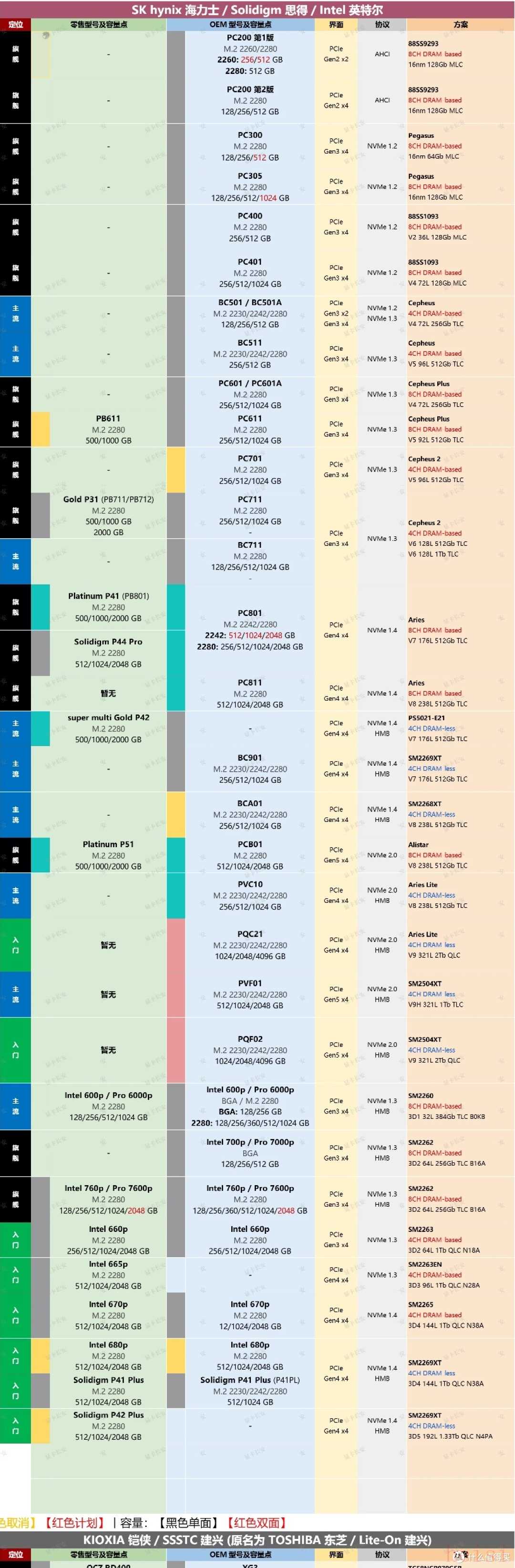 本次更新整理內(nèi)容新增ssd新產(chǎn)品與oem新型號,涵蓋容量.接口.協(xié)議.方案
