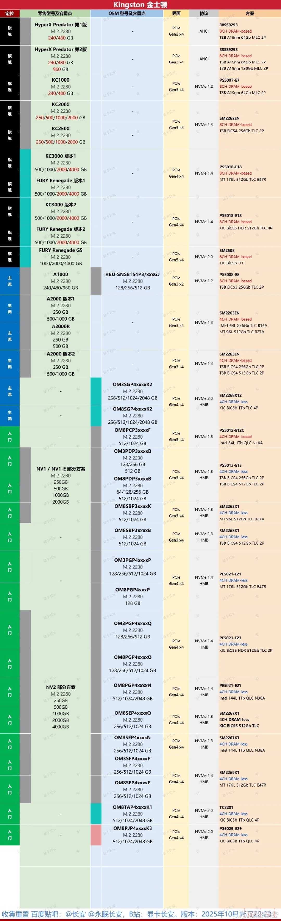 "消費(fèi)級SSD零售與OEM對應(yīng)關(guān)系表 (參考 2025.10.17)"