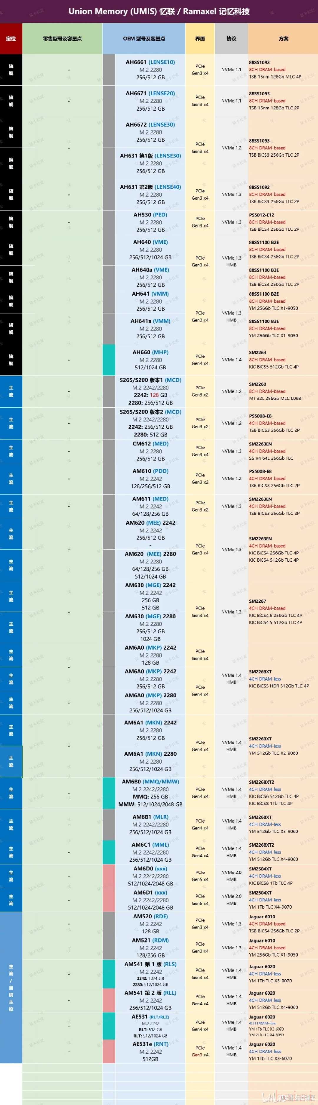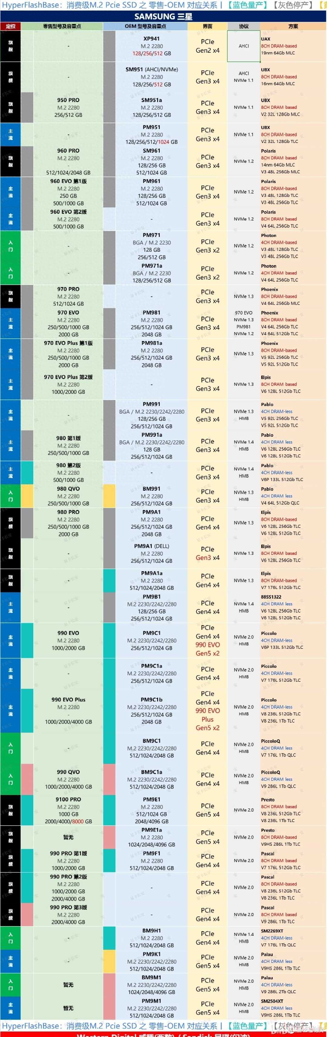 HyperFlashBase 消費(fèi)級M.2 PICe SSD零售與OEM對應(yīng)關(guān)系表 方案 用料內(nèi)容完整數(shù)據(jù) 2025.10.17