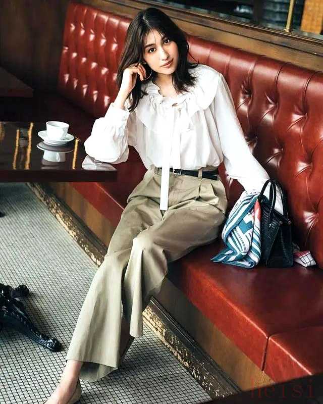 第九名,粉荷葉邊襯衫配斜紋褲,甜度被褲裝一刀砍半,約會(huì)感秒變“我可以自己回家”。