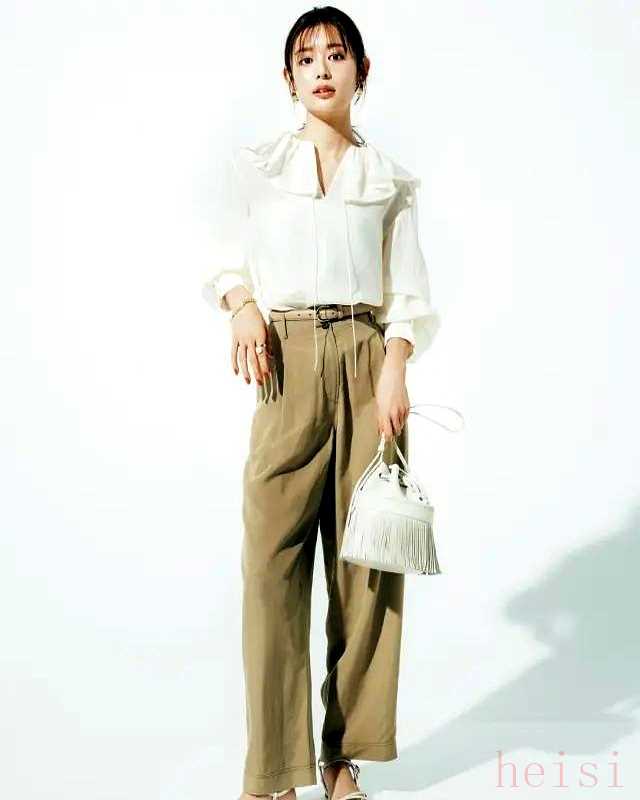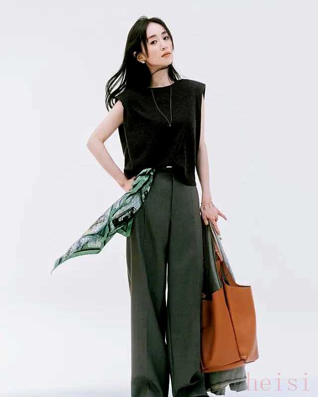 第三名,無(wú)袖上衣+長(zhǎng)褲+絲巾腰帶,一秒收腰,腿長(zhǎng)視覺(jué)+8厘米,小個(gè)子也能把比例玩成3:7。