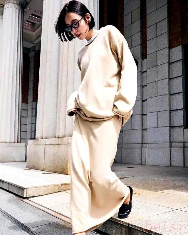 第四名,蓬松針織套裝袖口羅紋收束,避免被誤會(huì)成剛下床,居家服與外出服的分界線就在這一截松緊。