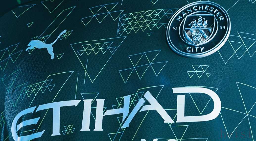 這套球衣設(shè)計的核心是三角形,它是FC品牌及其產(chǎn)品的強大象征,同時也讓人聯(lián)想到曼城的優(yōu)雅足球風格。球衣采用醒目的綠色,呼應EA FC的標志性美學,將實體與數(shù)字世界連接在一起。