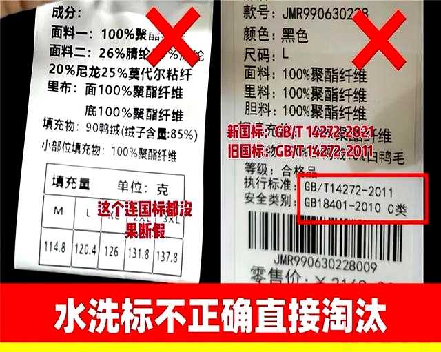 標(biāo)簽新國標(biāo)GB/T14272-2021已經(jīng)寫清楚,絨子含量≥50%才配叫羽絨服,低于這個(gè)數(shù),再好看都是夾克。
