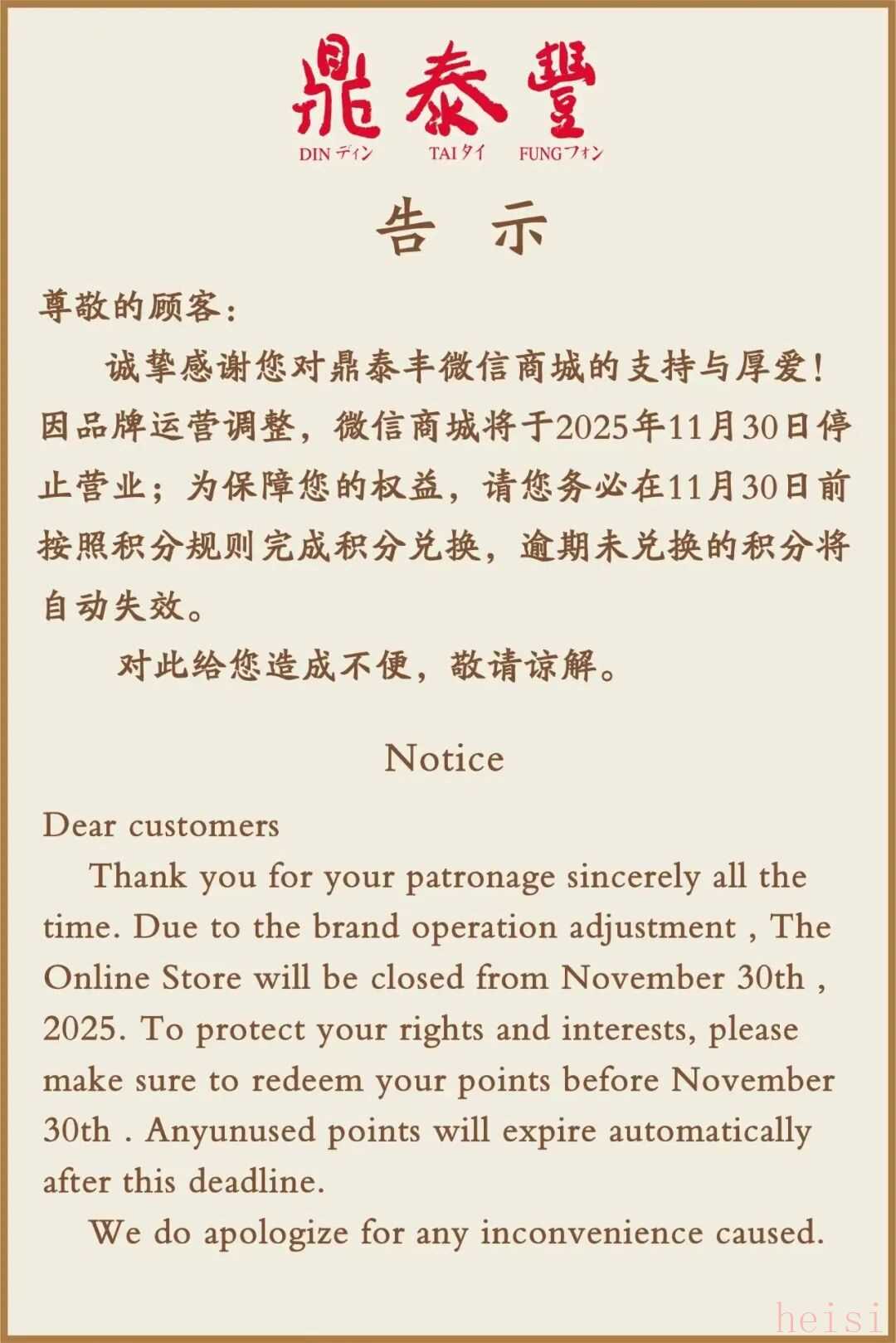 知名餐飲品牌鼎泰豐發(fā)布消息稱