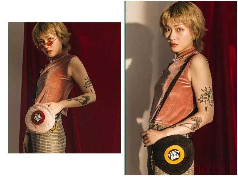 我總覺得這款圓形包包有種很港風的感覺,也不知道為什么,可能是因為里面的“當”字,傳統(tǒng)與現(xiàn)代的融合,背上它街拍瞬間變cool。