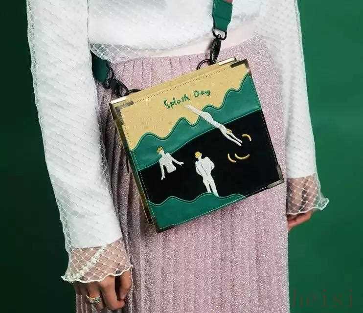 我最喜歡它家的這款包包,看著正正方方像本書似的。但是在真的很童趣,藍色、綠色、紫色都各有各的風格。