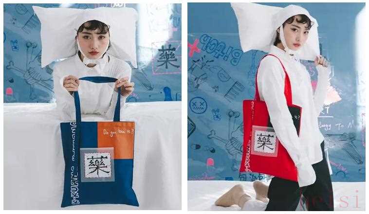 我倒是挺喜歡它家這款帆布包的,上面的“藥”字很特別,顏色搭配的也很有撞色感,很skr。