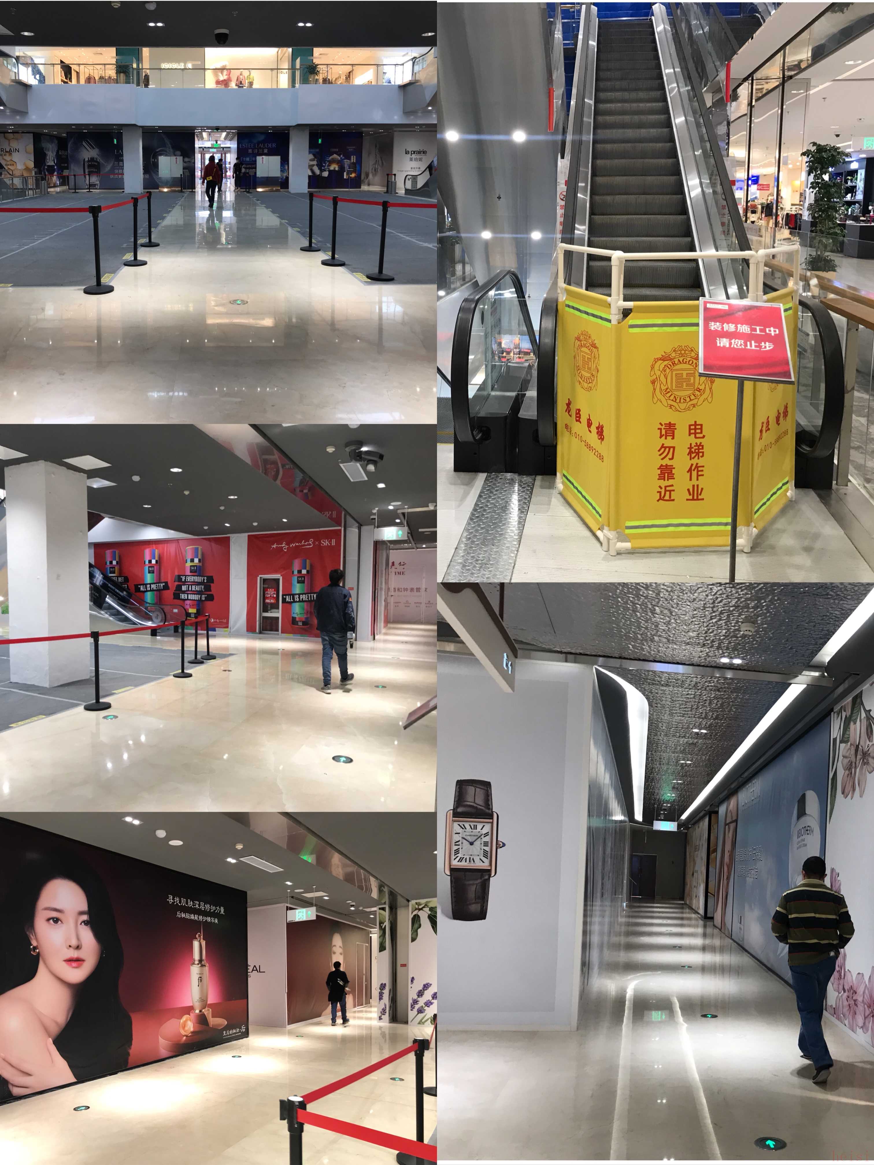 1層的中庭區(qū)域比較空蕩,加了圍擋。化妝品區(qū)域、珠寶區(qū)域仍在改造中,也有擋板遮擋。廣告牌顯示該區(qū)域中不乏雅詩蘭黛、蘭蔻等國際品牌。該區(qū)域中還設(shè)有比亞迪北京福鈴恒瑞體驗中心,顯示“即將開業(yè)”。在2層、3層、4層等區(qū)域,除個別品牌未開業(yè)外,大部分品牌已開放營業(yè)。而5層整體仍未改造完成,擋板顯示“裝修施工中,請您止步”。新京報記者了解到,食街、影院等均設(shè)在5層。