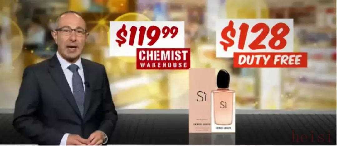 阿瑪尼摯愛香水在機(jī)場免稅店賣128澳元,但在Chemist Warehouse只賣119.99澳元;