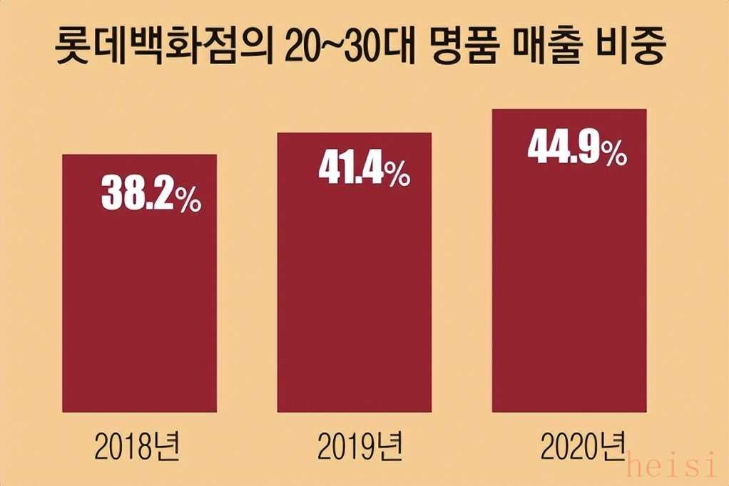 樂天百貨奢侈品銷售額中20-30歲消費者貢獻的比例