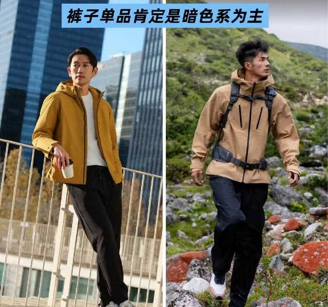 "直筒褲":簡(jiǎn)潔的線條避免了過于老氣的感覺,搭配合身的沖鋒衣,整體利落有型,符合這個(gè)年齡段男性追求成熟又不失活力的審美。