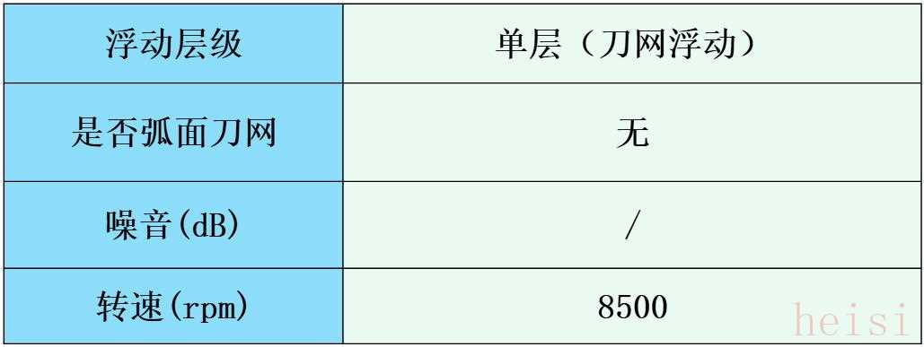 它轉(zhuǎn)速約 7000 轉(zhuǎn),動力中規(guī)中矩,更適配對性能要求不高的用戶;但優(yōu)勢在于雙環(huán)超速刀網(wǎng)設(shè)計,能提升剃須效率、縮短耗時,搭配獨立浮動刀頭,可緊密貼合面部輪廓,實現(xiàn)干凈利落的剃須效果。