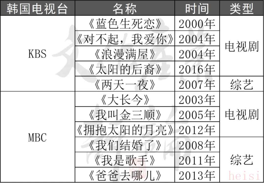 國家級電視臺KBS在2004年前后產(chǎn)出過像《浪漫滿屋》《兩天一夜》(中國曾引進(jìn))等眾多國民知名度極高的作品,并且也是韓流當(dāng)年進(jìn)入我國的“主力軍”。