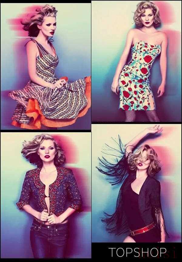 全世界最會(huì)穿衣的女人超模Kate Moss,不僅親自帶貨,穿著Topshop裙子上《Vogue》的封面,更是和品牌一起聯(lián)名設(shè)計(jì)。