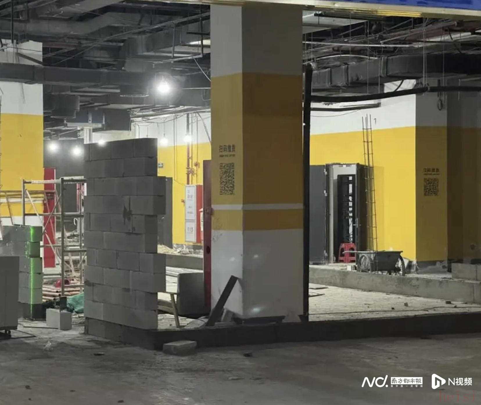 繞到后方,可見(jiàn)一樓中庭鋪位設(shè)有盒馬鮮生海報(bào)的圍擋,并且留有招聘聯(lián)系方式。該區(qū)域下方負(fù)一樓停車(chē)場(chǎng)也能看到現(xiàn)場(chǎng)有工人正在進(jìn)行施工,但停車(chē)場(chǎng)現(xiàn)場(chǎng)暫未有盒馬鮮生入駐的明顯標(biāo)識(shí)。
