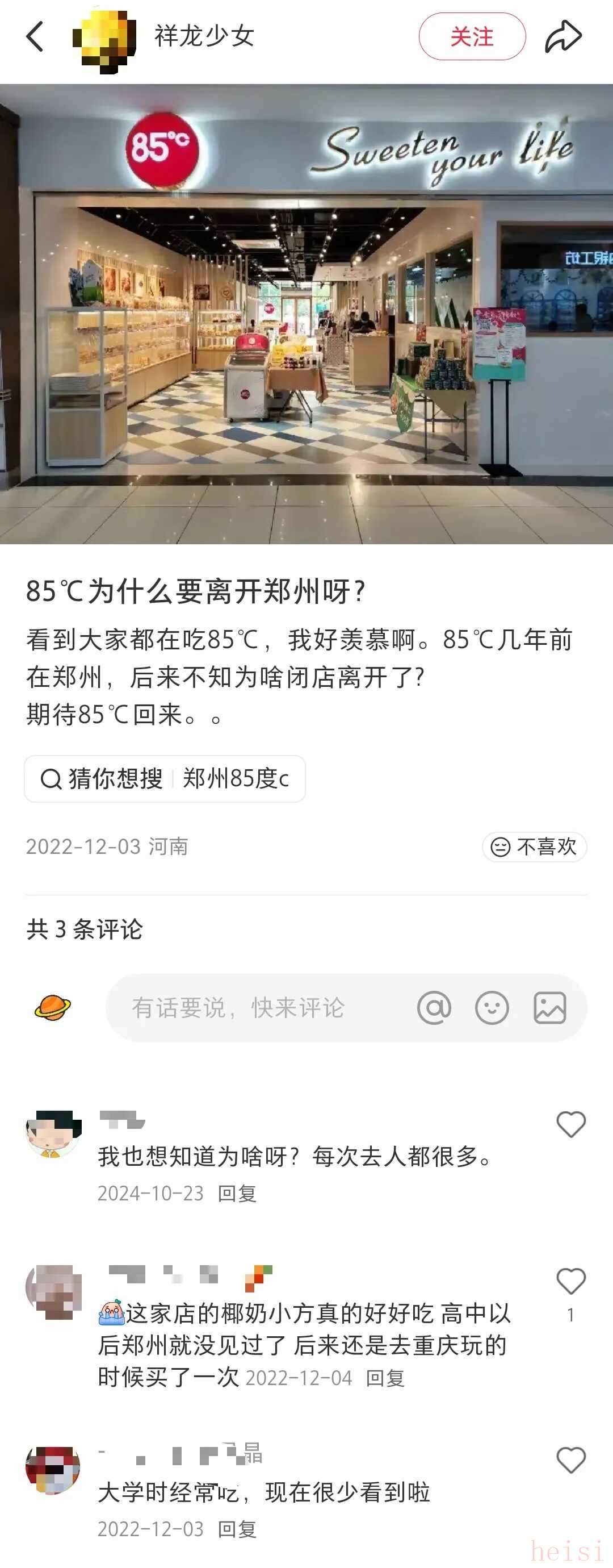 最近杭州、上海好幾家85度C關(guān)門了,消息傳到鄭州,不少老顧客這才想起來,這個當(dāng)年火過的臺灣烘焙店,早在2016年就從鄭州沒了,二七廣場那家首店開張時人擠人,現(xiàn)在連外賣軟件上都找不著影兒。