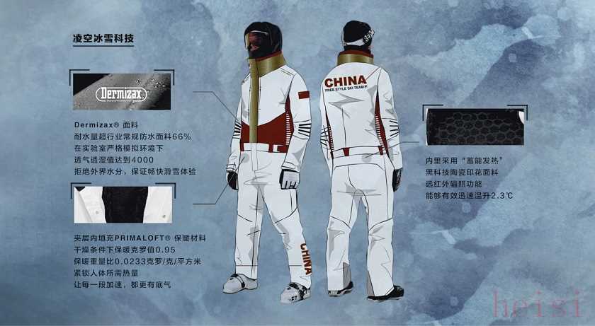 據(jù)FILA方面介紹,這款比賽戰(zhàn)袍搭載了FILA最新的“凌空冰雪科技”,外部采用Dermizax?面料,耐水量超行業(yè)常規(guī)防水面料66%;在實(shí)驗(yàn)室嚴(yán)格模擬環(huán)境下透氣透濕值達(dá)到4000,高于常規(guī)滑雪面料60%。