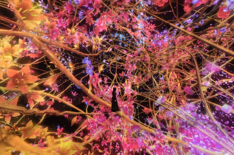 相信很多人都會被teamLab色彩繽紛的投影影像所吸引。不知道你有沒有發(fā)現(xiàn),展覽經(jīng)常以森林、花