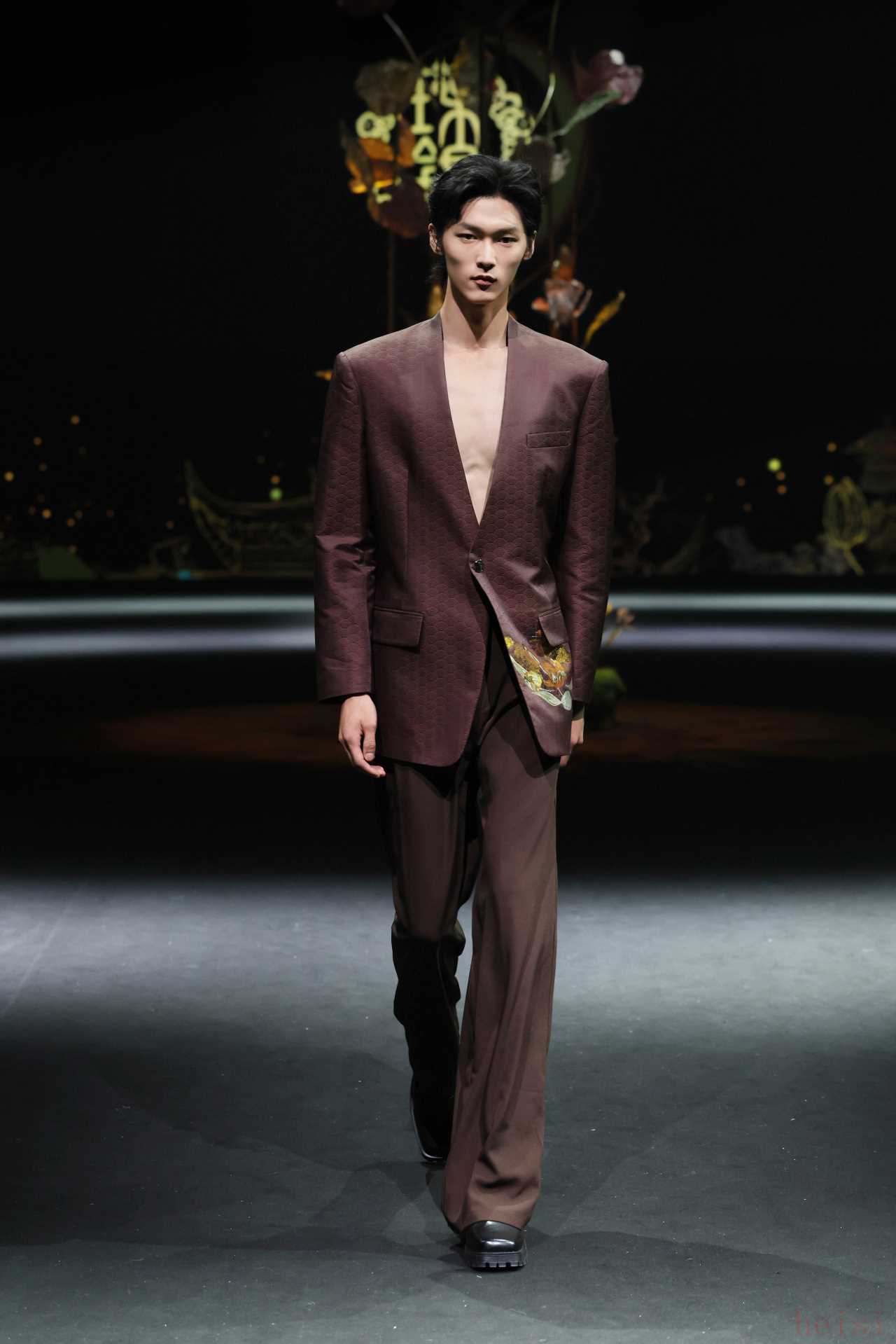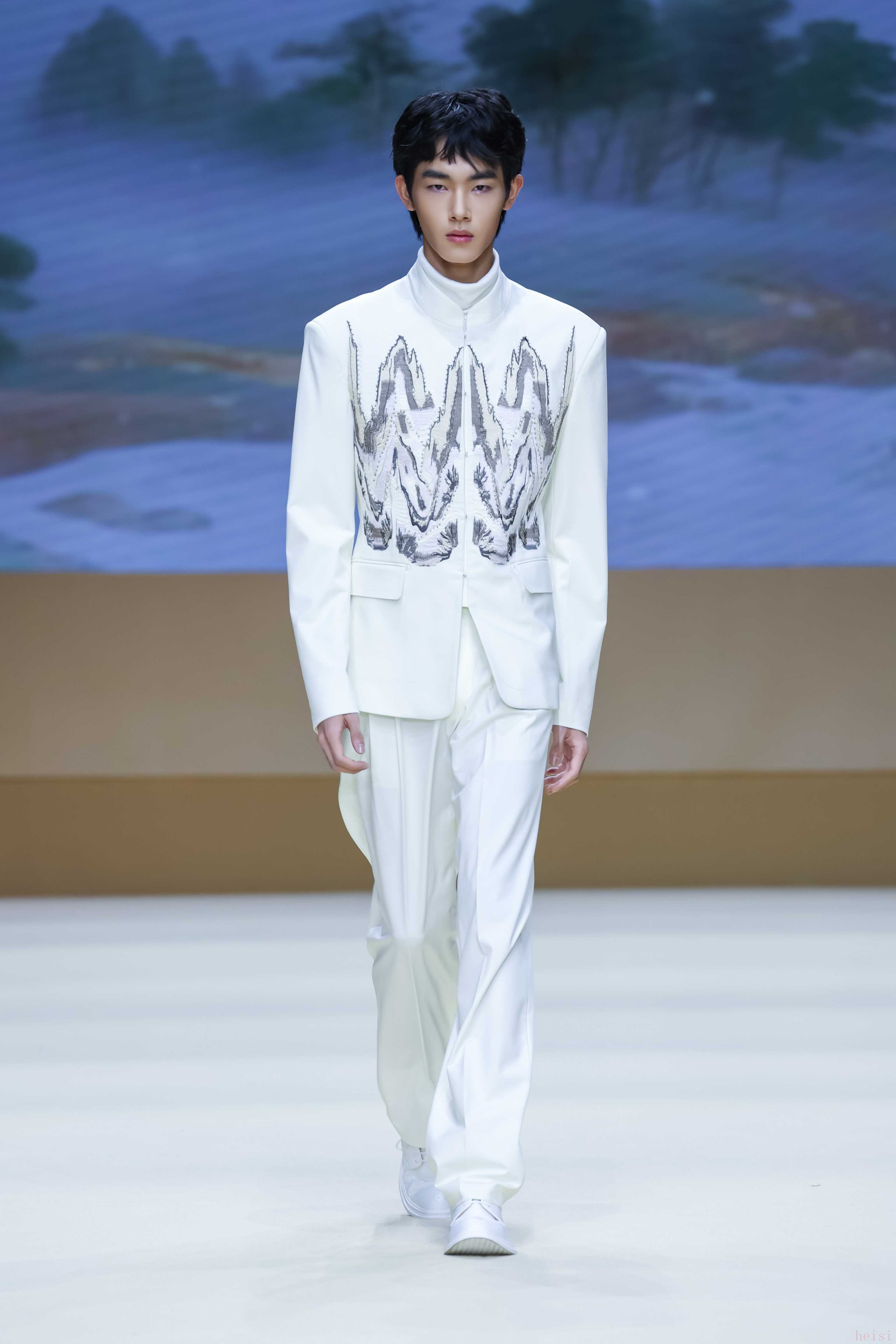 傳承千年非遺宋錦的品牌上久楷,本季攜手中國工藝美術大師鄒英姿,將蘇繡鄒氏“滴滴針法”與法繡繡片同臺呈現(xiàn),勾勒山河樹木的自然意象,并突破性地采用分層織造技藝,將典雅宋錦與輕盈紗質進行混紡融合。張藝興、黃曦彥的最新上身演繹,也為上久楷宋錦設計帶來更多年輕質感。