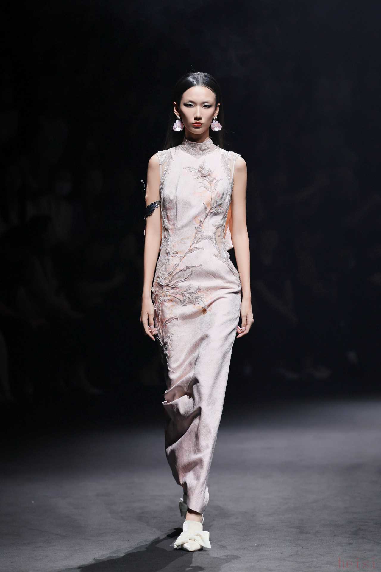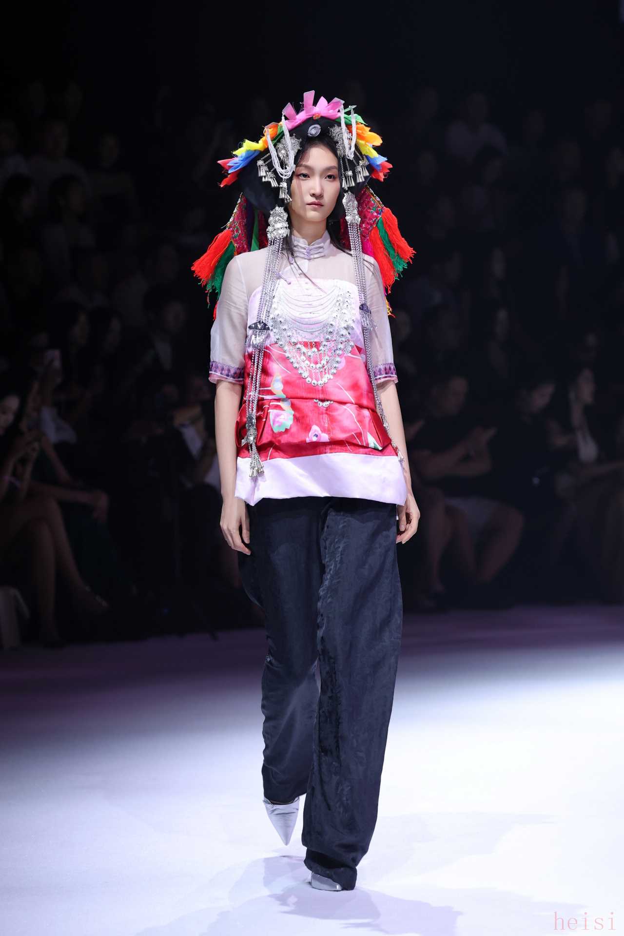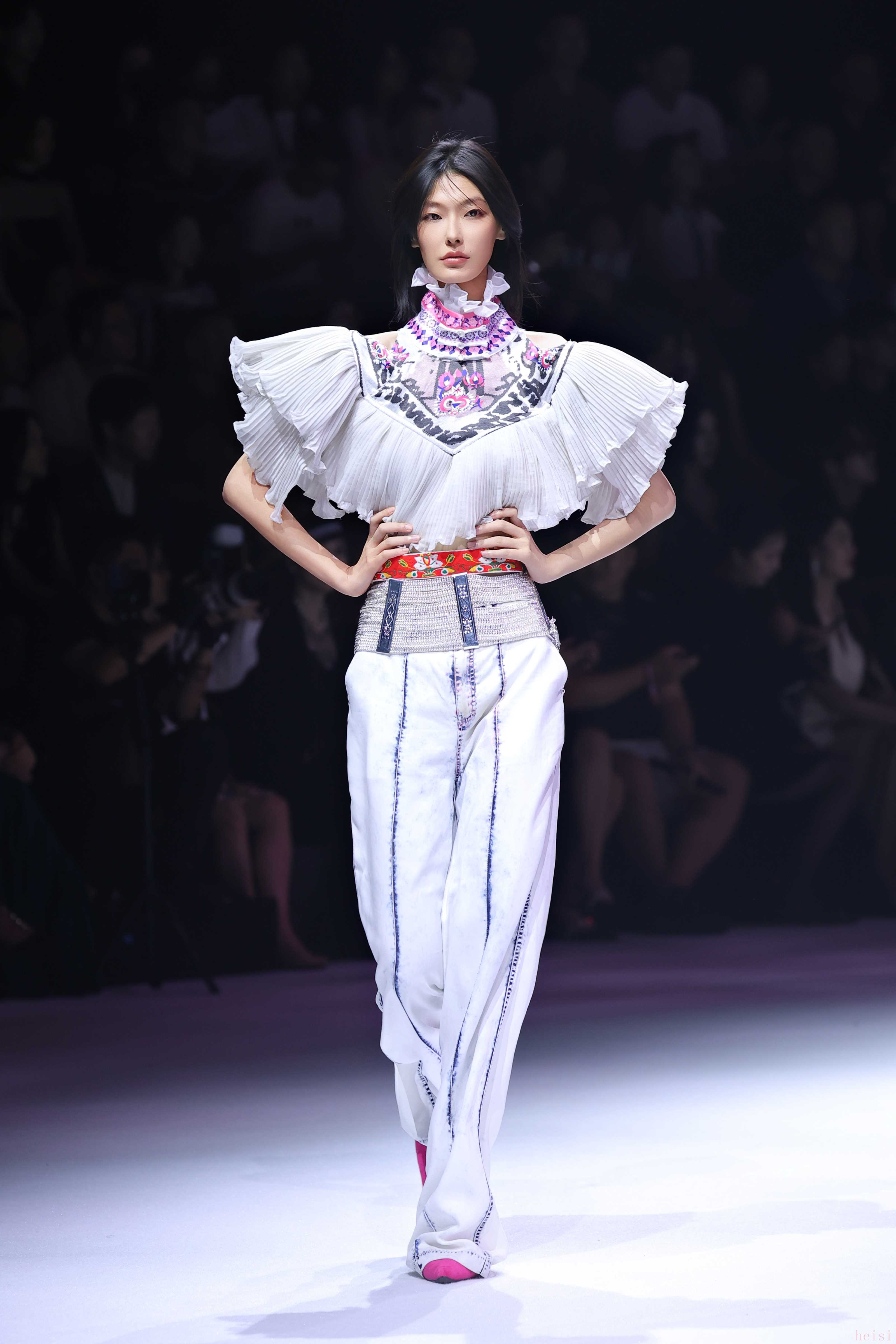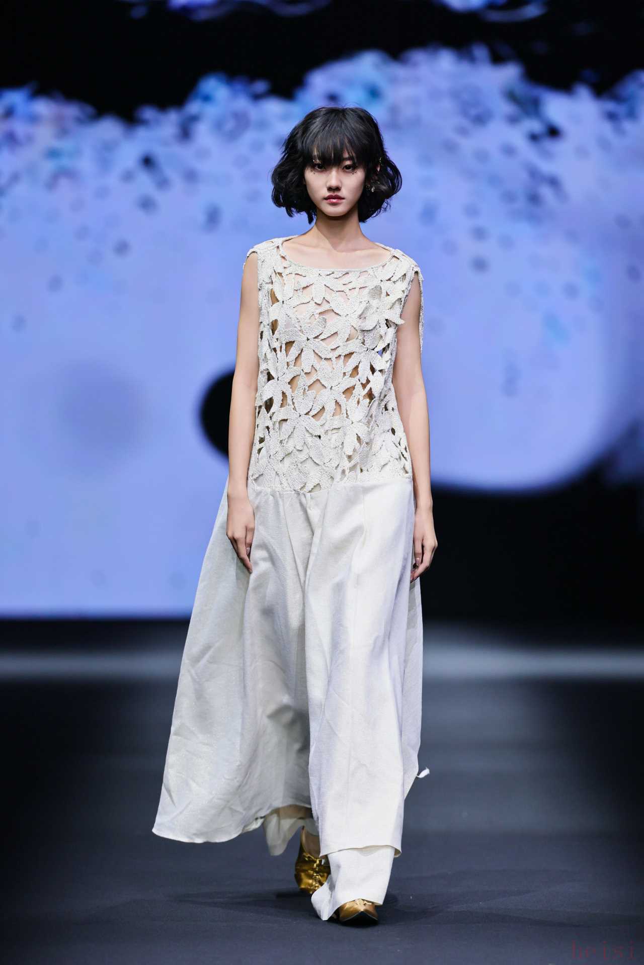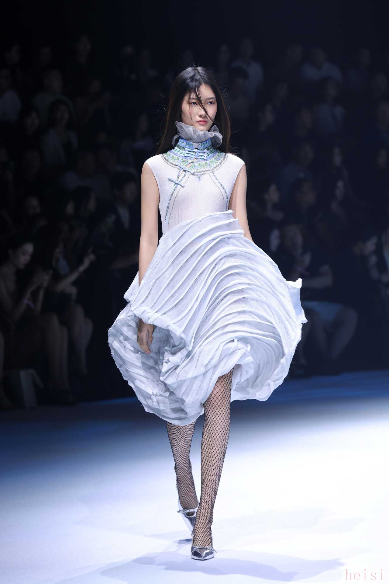 此外,Must Bloom將五谷豐登的神話故事,與非遣的剪紙文化相交識,蘊育出新的“生命”;ZIFEI WANG將云岡石窟卷云紋、夔龍紋、蓮花等經典元素抽象化輔以3D打印工藝,將傳統(tǒng)圖案轉化為抽象立體結構;北京服裝學院副院長鄒游的「紙上的叮囑」系列,將北京張家灣的大運河歷史文化融入設計;干士品牌以貴州苗族非遺蠟染結合3D打印以及編織、繩結、流蘇等手工藝呈現(xiàn)現(xiàn)代女性氣質;如子之衣融合傳統(tǒng)與現(xiàn)代服飾結構并采用天然及環(huán)保纖維傳達《詩經》意蘊;瓅錦采用“藝術+非遺織錦技藝 ”和“藝術+科技 ”來探究國潮面料時尚化的設計……豐富的創(chuàng)新設計令人應接不暇。