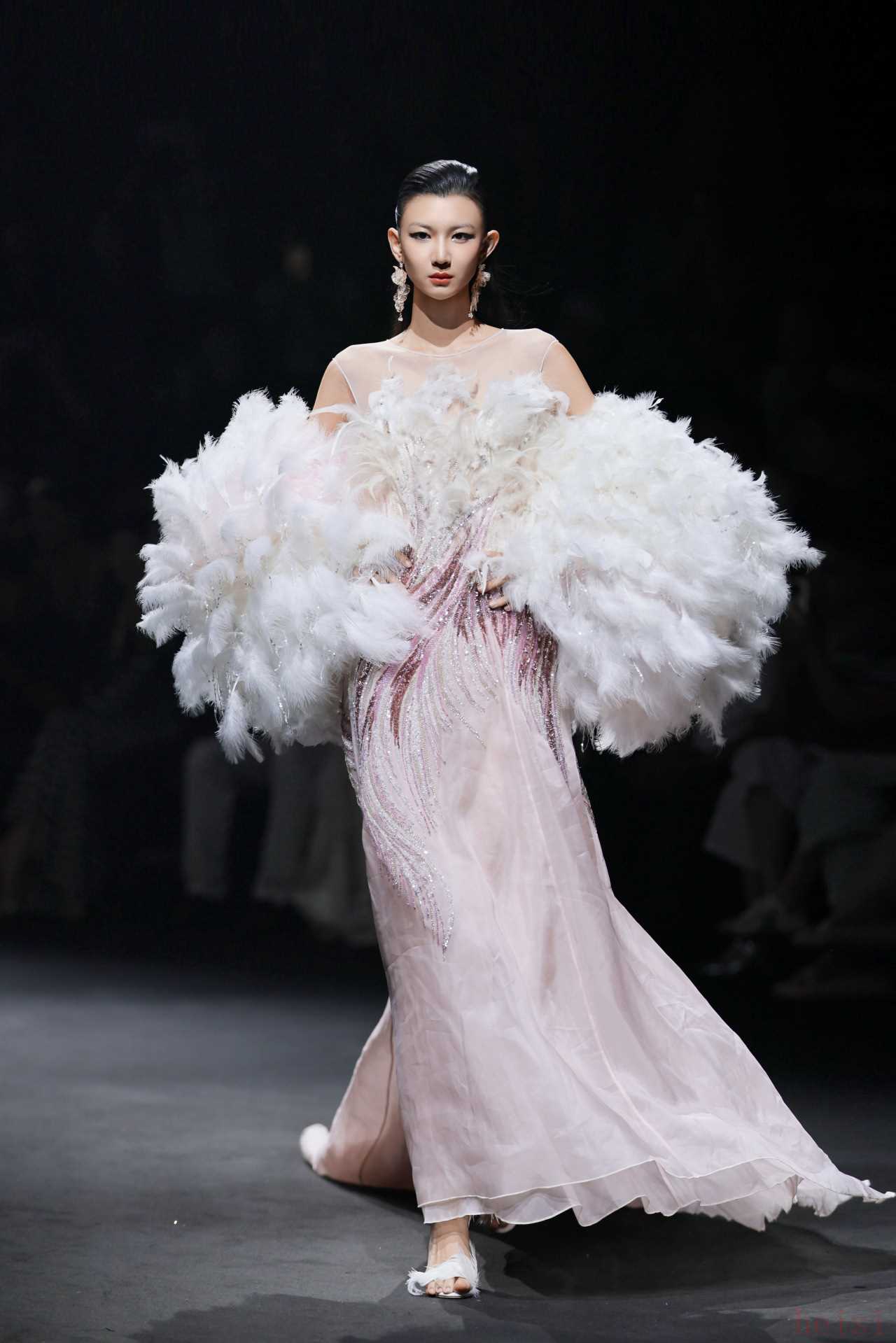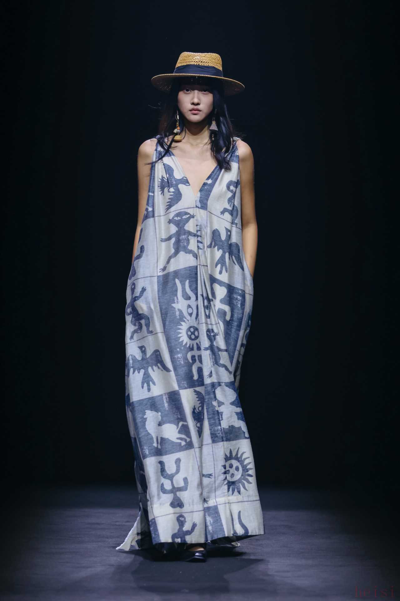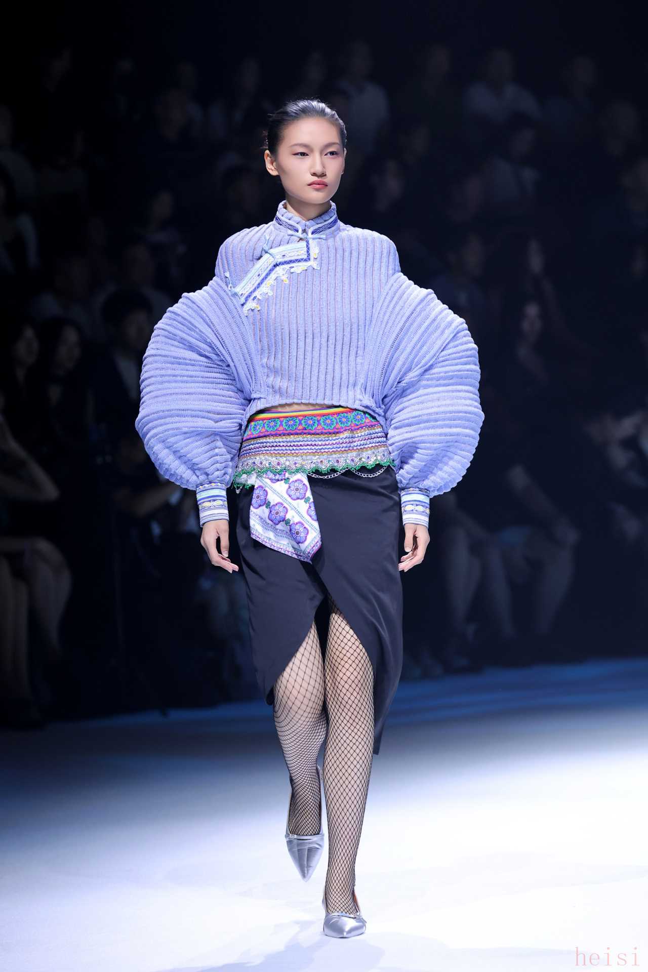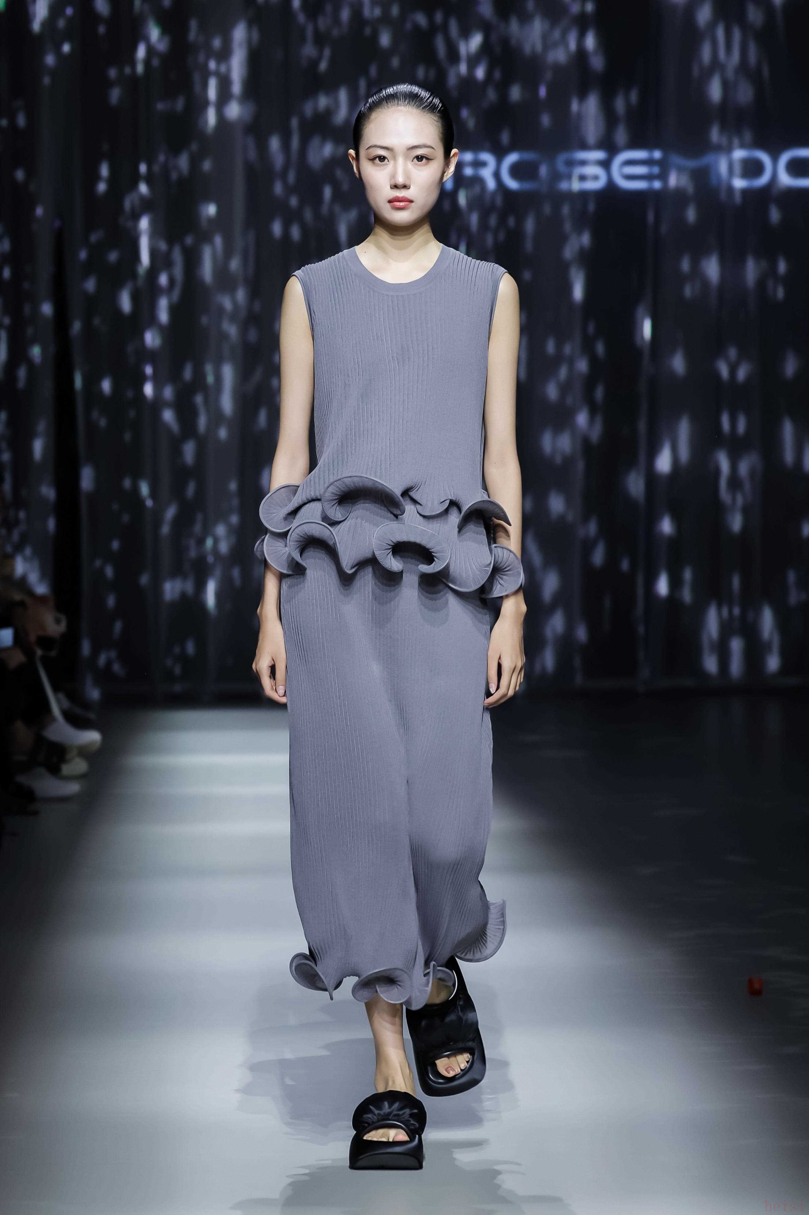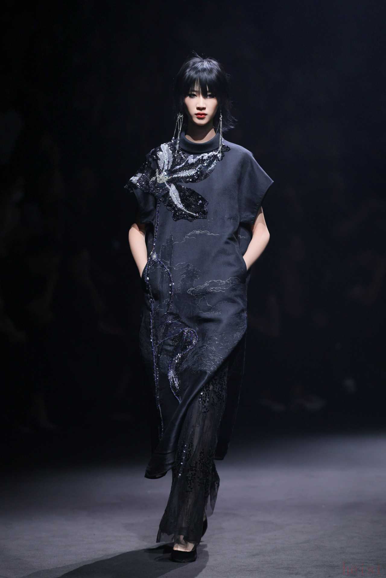 此外,Must Bloom將五谷豐登的神話故事,與非遣的剪紙文化相交識,蘊育出新的“生命”;ZIFEI WANG將云岡石窟卷云紋、夔龍紋、蓮花等經典元素抽象化輔以3D打印工藝,將傳統(tǒng)圖案轉化為抽象立體結構;北京服裝學院副院長鄒游的「紙上的叮囑」系列,將北京張家灣的大運河歷史文化融入設計;干士品牌以貴州苗族非遺蠟染結合3D打印以及編織、繩結、流蘇等手工藝呈現(xiàn)現(xiàn)代女性氣質;如子之衣融合傳統(tǒng)與現(xiàn)代服飾結構并采用天然及環(huán)保纖維傳達《詩經》意蘊;瓅錦采用“藝術+非遺織錦技藝 ”和“藝術+科技 ”來探究國潮面料時尚化的設計……豐富的創(chuàng)新設計令人應接不暇。