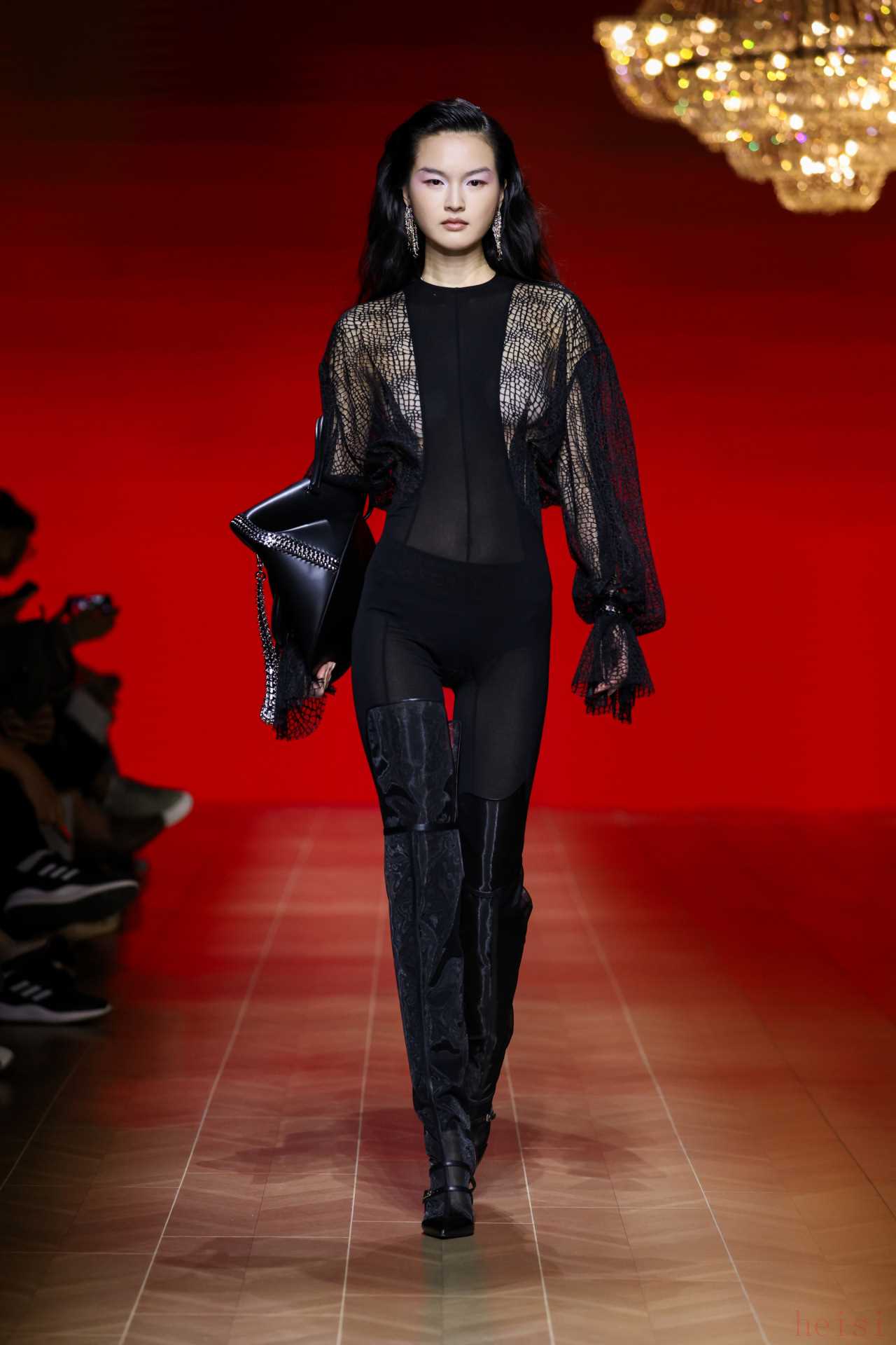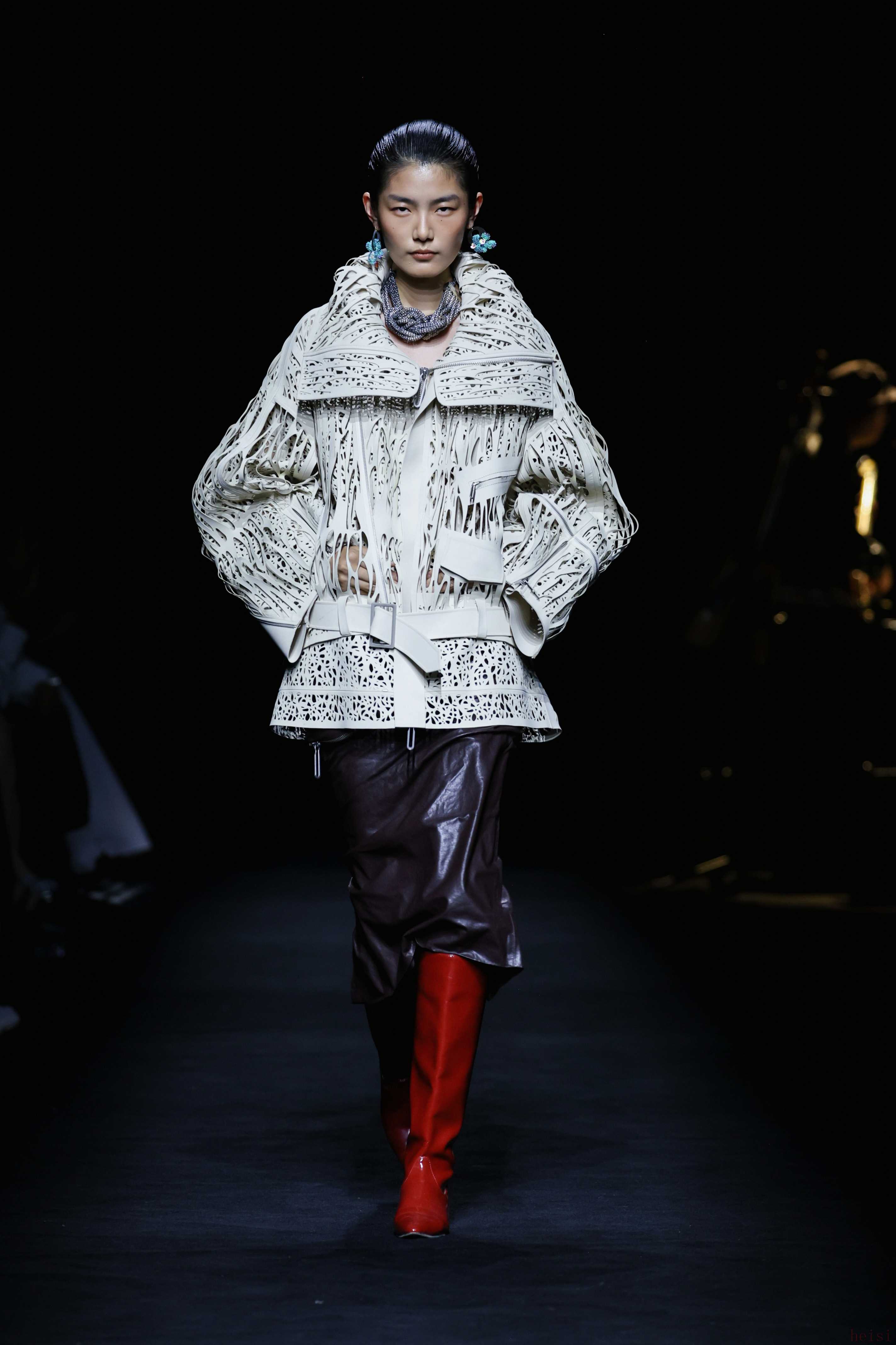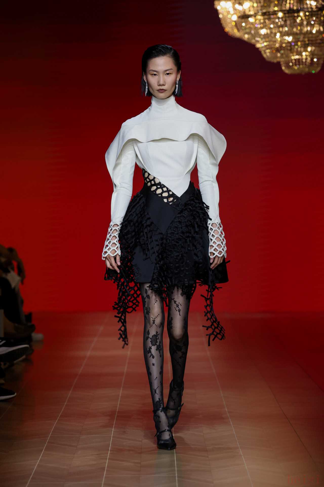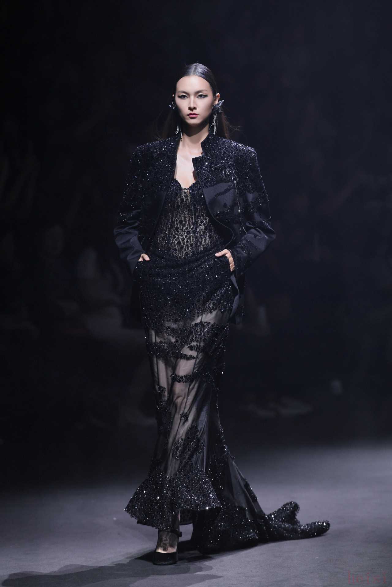 而近年來頗受行業(yè)關注的品牌MAGGIE MA,此季設計解構傳統(tǒng)美學的桎梏,以女媧神話為精神圖騰, 讓現(xiàn)代女性的生命張力在時空經緯中洇染:異質面料的解構重組,專屬圖騰的肌理敘事,共同破譯女性自我價值的精神符碼。陳楚生也第一時間穿上MAGGIE MA最新系列秀款登臺演出。