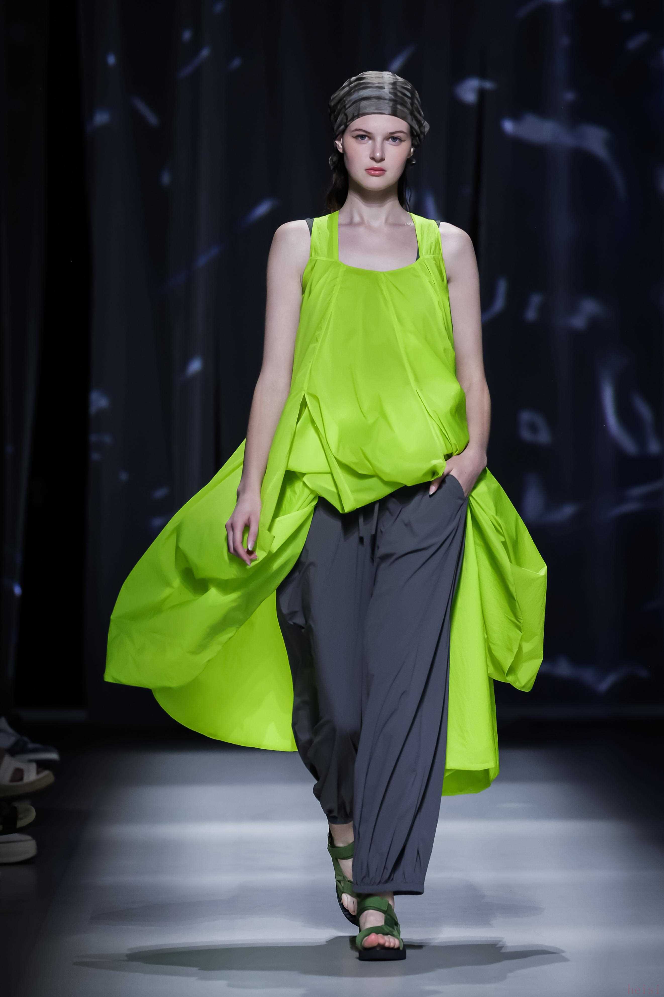 ROSEMOO容子木本季呈現(xiàn)「無形之形」女裝系列,通過服裝語言解構水的哲學維度,展現(xiàn)東方美學與可持續(xù)設計的前沿對話。隨性詩意的搭配手法,風格上加入更具活力的運動感和無齡化的城市輕戶外系列,采用多種工藝方法探索面料、織物與空間、時間、重力和記憶的關系。