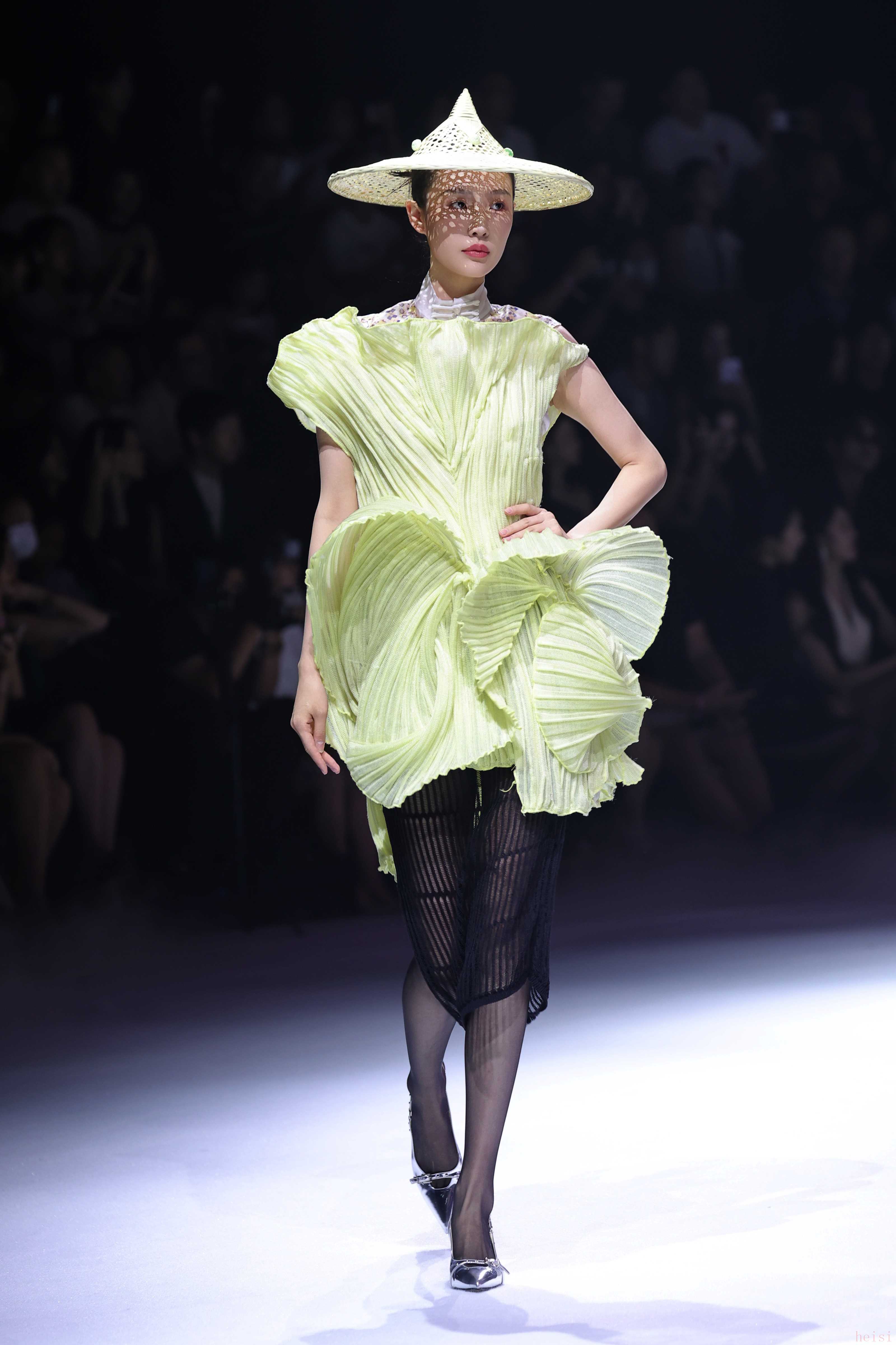 “金頂獎”設計師陳宇以國家級非遺惠安女服飾文化為靈感,將傳統(tǒng)工藝融入現(xiàn)代廓形,在「惠女繁花勝似錦」閉幕大秀中演繹惠安文化融匯閩南海韻、石雕精神與當代美學的東方浪漫。