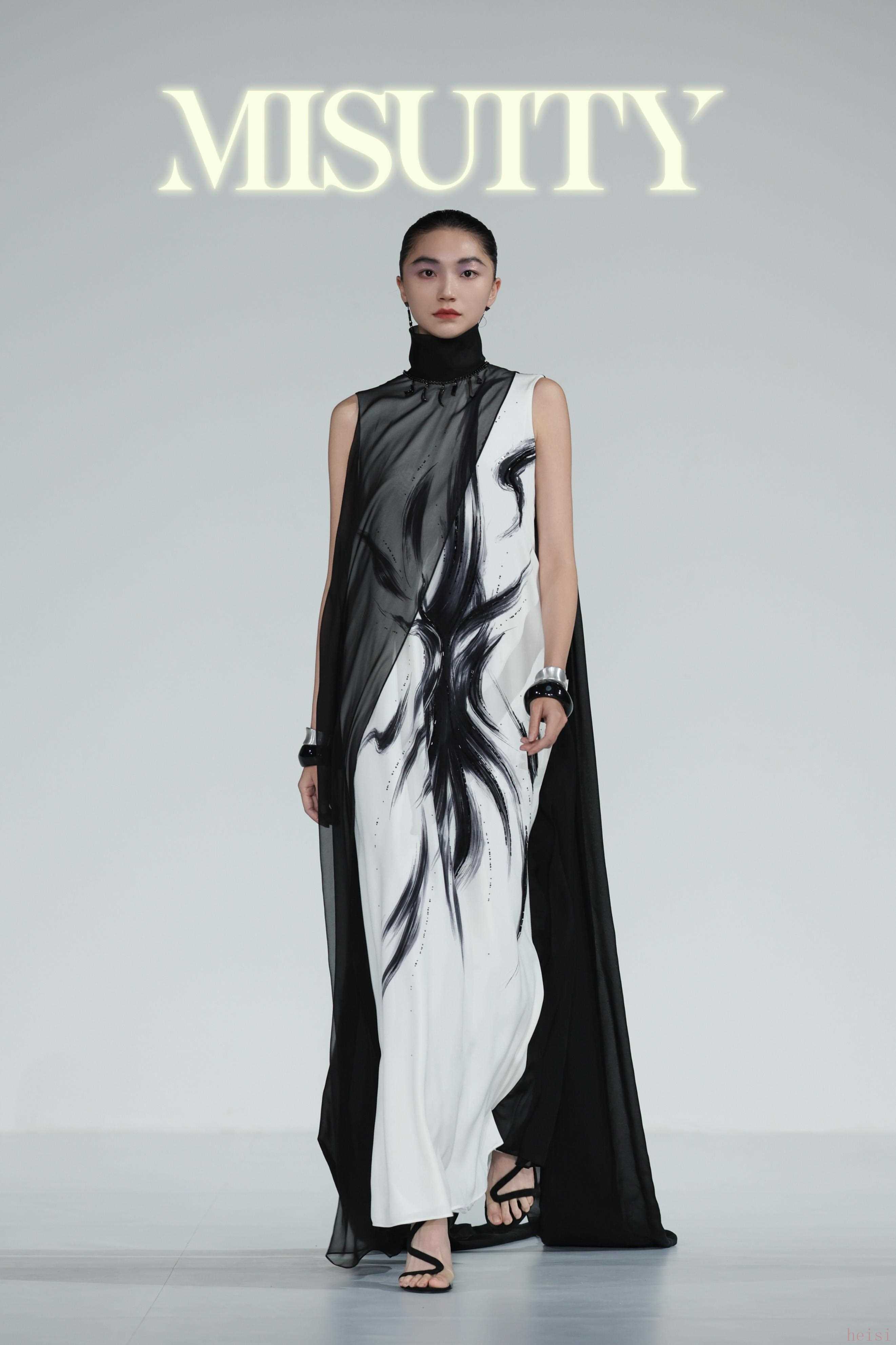 siyun huang本季發(fā)布的「虛實丹青」系列,延續(xù)了品牌“時尚+藝術+科技”的核心理念,以中國傳統(tǒng)丹青藝術為靈感,結合可持續(xù)科技面料與動態(tài)交互技術,呈現(xiàn)了虛實交融的東方美學表達,將傳統(tǒng)水墨意境轉化為未來感時裝語言。張韶涵、張靚穎也在近期舞臺表演中穿著siyun huang最新秀款。