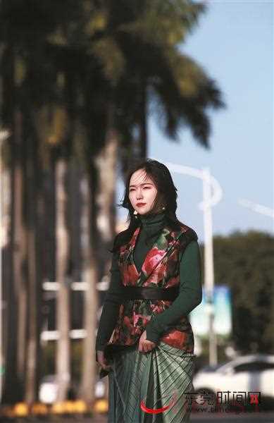 第一套衣服,歡歡老師和負責服裝的曉曉老師,給王靜選擇了撞色的裝扮。綠色的打底,花式的馬甲和一條淡綠色的裙子,再加一條黑色的腰帶,王靜整個人亮了起來,顯得又端莊又洋氣。攝影記者小姐姐說,這套衣服讓有點娃娃臉的王靜顯得成熟,十分有女人味。
