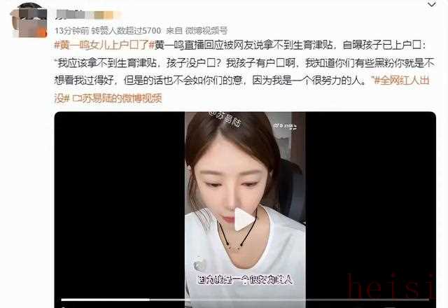 關(guān)于您提到的“王思聰女兒上戶(hù)口”以及“黃一鳴”用孩子炒作最終“人財(cái)兩空”的說(shuō)法,這里有一些信息需要澄清和補(bǔ)充:
