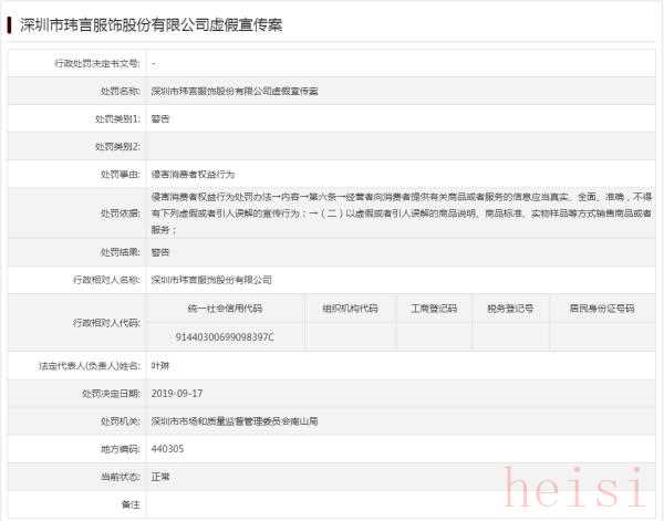 "原因:" 據(jù)報道,處罰是基于瑋言服飾存在“虛假宣傳”行為,違反了《中華人民共和國廣告法》的相關(guān)規(guī)定。