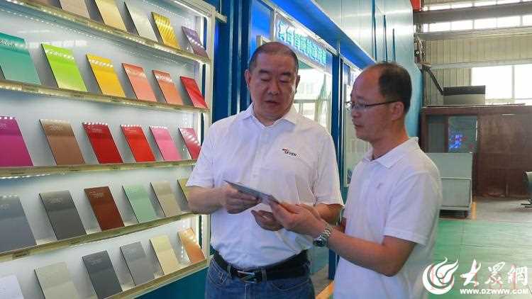東阿藍(lán)天七色建材有限公司總經(jīng)理周濤(左)
