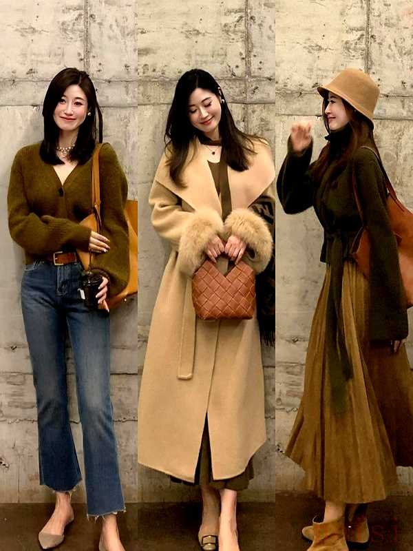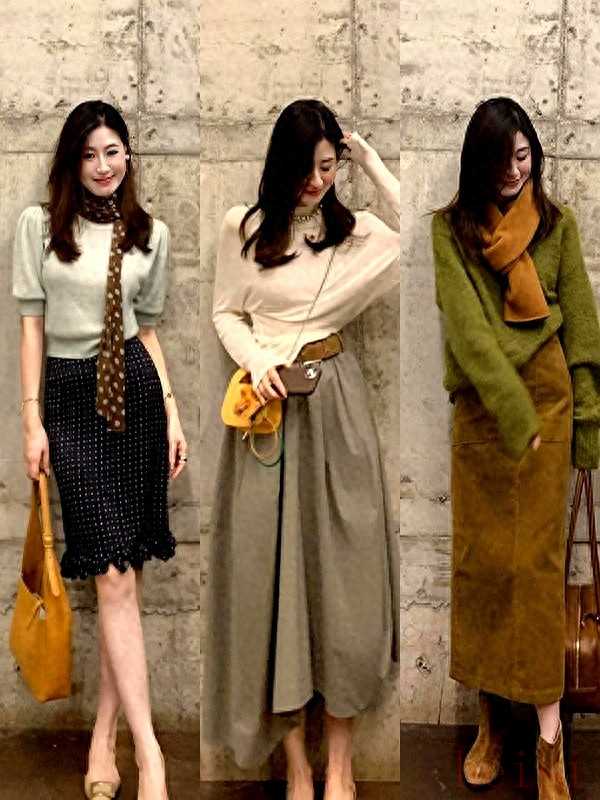 "黑色 (Black):" 經典、百搭、顯瘦、顯氣質。黑色半裙能很好地襯托咖色外套,增加整體造型的質感,同時平衡咖色的暖調。