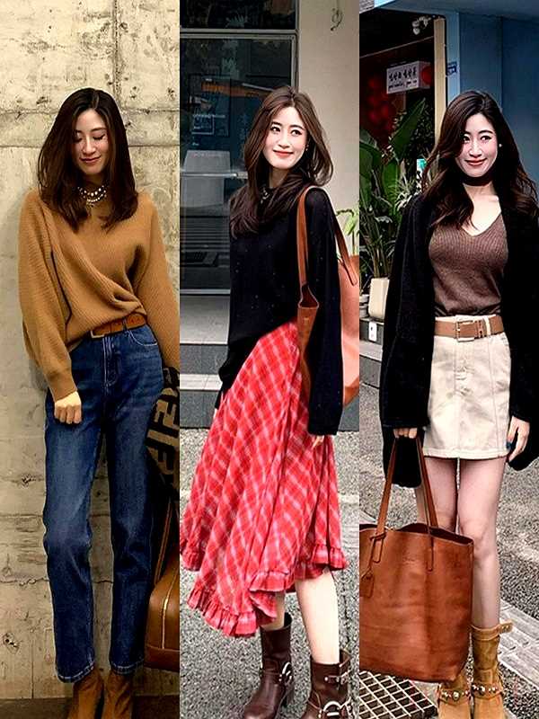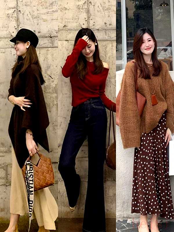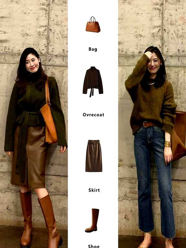 "組合效果:" 咖色與黑色的組合是永恒的經典,對比中帶著和諧,既有視覺層次感,又不失整體性,非常容易穿出高級感。