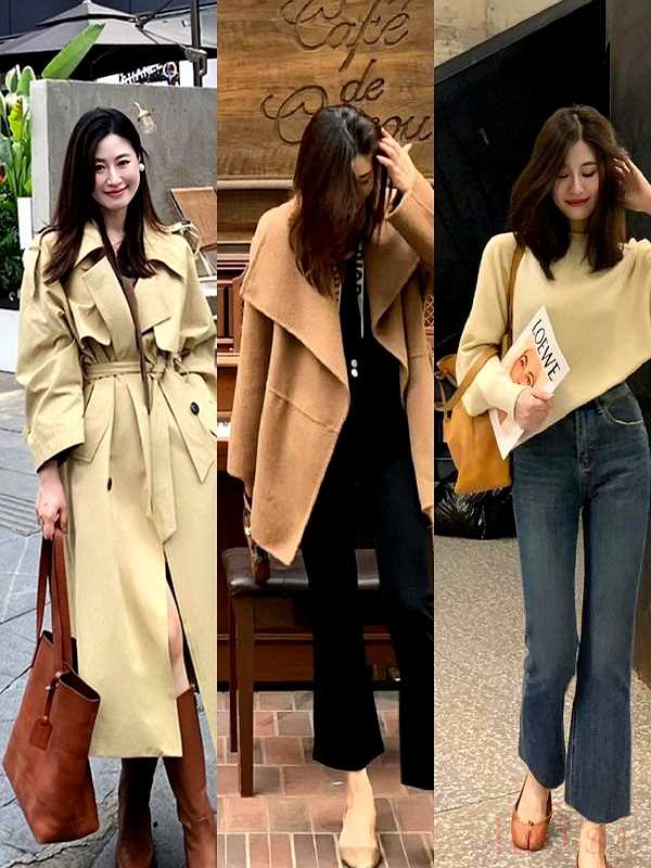 "咖色 (Coffee Brown):" 溫暖、沉穩(wěn)、高級。作為外套的顏色,既能應對早秋微涼天氣,又不會過于沉重,顯得知性而大氣。