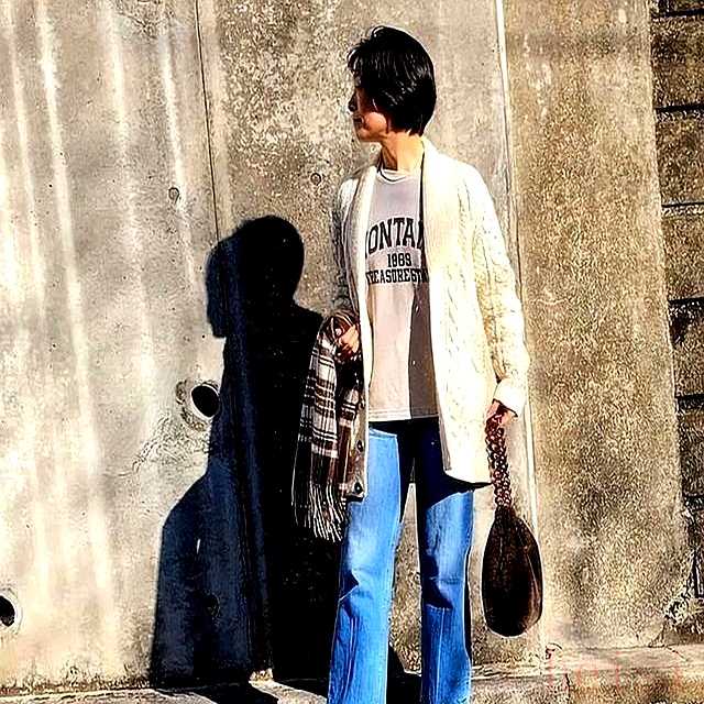 寬松帽衫+牛仔短褲是二十歲專利,硬穿到五十歲,像把過去的自己強(qiáng)行套在身上;奶奶衫的溫柔線條反而承認(rèn)“我到了新階段”,不跟少女搶跑道,把閱歷換成從容。