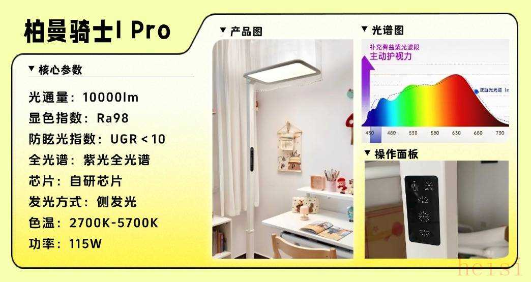 護(hù)眼指數(shù):????核心參數(shù):是否紫光全光譜:?是否補(bǔ)全紅光:?防眩光指數(shù):UGR<10顯色指數(shù):Ra98護(hù)眼性能:采用全光譜LED光源,模擬自然光效果,色溫穩(wěn)定在4000K,顯色指數(shù)Ra98,能較好還原物體真實(shí)色彩。防眩光指數(shù)UGR<10,提供舒適的照明體驗(yàn)。什么牌子的落地?zé)艉茫炕裟犴f爾HWL-02Plus主打大空間照明,16000lm的高光通量能輕松覆蓋20㎡區(qū)域,不管是客廳開放式學(xué)習(xí)區(qū),還是多人共用的大書房,都能讓光線均勻鋪滿,多人同時(shí)學(xué)習(xí)、辦公也不搶光。不過(guò)光通量太高,近距離直視或在桌面中心位置使用時(shí)可能會(huì)有輕微刺眼感,需要適當(dāng)調(diào)節(jié)燈頭角度或降低亮度以獲得舒適光線。操作延續(xù)了品牌的簡(jiǎn)約風(fēng)格,旋鈕調(diào)光直觀好上手,老人小孩轉(zhuǎn)一轉(zhuǎn)就能調(diào)亮度,不用記復(fù)雜操作。不過(guò)功能比較單一,僅支持亮度調(diào)節(jié),沒(méi)有更多模式可選;且沒(méi)有紅光增益,長(zhǎng)時(shí)間用眼時(shí)緩解疲勞的效果稍弱,敏感人群可能會(huì)覺(jué)得光線偏集中,需要適應(yīng)。作為高端款,它的價(jià)格偏高,更適合預(yù)算充足、看重品牌保障,且有大空間照明需求的家庭。3、柏曼騎士I Pro