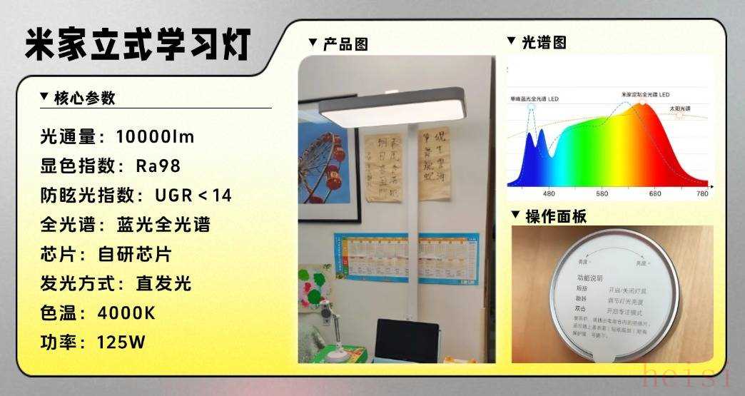 護(hù)眼指數(shù):???核心參數(shù):是否紫光全光譜:?是否補(bǔ)全紅光:?防眩光指數(shù):UGR<13顯色指數(shù):Ra98護(hù)眼性能:搭載了擴(kuò)光透鏡技術(shù),可顯著減少光線的明暗差異,280顆全光譜燈珠能夠呈現(xiàn)Ra98左右的顯色指數(shù)。什么牌子的落地?zé)艉??松下致沐D200在照明設(shè)計(jì)上,采用一體式發(fā)光面結(jié)構(gòu),內(nèi)部嵌入280顆全光譜燈珠,搭配側(cè)發(fā)光技術(shù),能實(shí)現(xiàn) 360 度全方位照明,讓光線均勻覆蓋使用區(qū)域,避免局部光照死角,為進(jìn)一步優(yōu)化照明體驗(yàn),它還搭載了擴(kuò)光透鏡技術(shù),可顯著減少光線的明暗差異,同時(shí)減輕重影現(xiàn)象,操作層面的設(shè)計(jì),配備了液晶觸控面板,直觀清晰,且支持無(wú)極調(diào)光功能,不過(guò)這款護(hù)眼大路燈采用自研芯片,在抗衰減性能上表現(xiàn)平平,長(zhǎng)期使用后可能出現(xiàn)光照效果下降的情況;并且藍(lán)光峰值比較高。7、米家立式學(xué)習(xí)燈