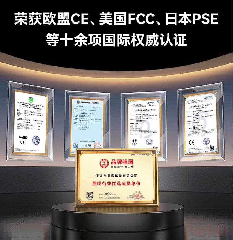 正是這種“科研級(jí)測(cè)試+用戶級(jí)驗(yàn)證”的雙重閉環(huán),才造就了書客護(hù)眼臺(tái)燈在光學(xué)性能、安全性與耐用性上的行業(yè)領(lǐng)先。下圖為suker書客品牌各種權(quán)威機(jī)構(gòu)認(rèn)證圖: