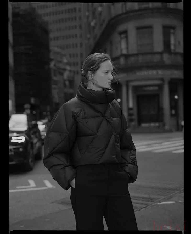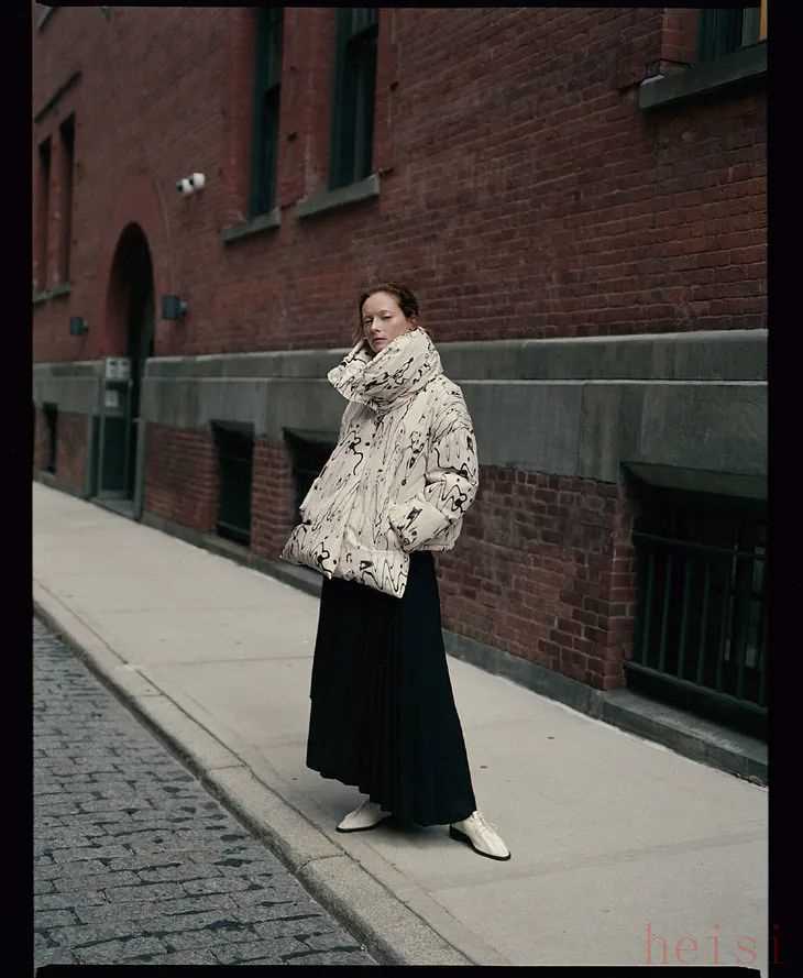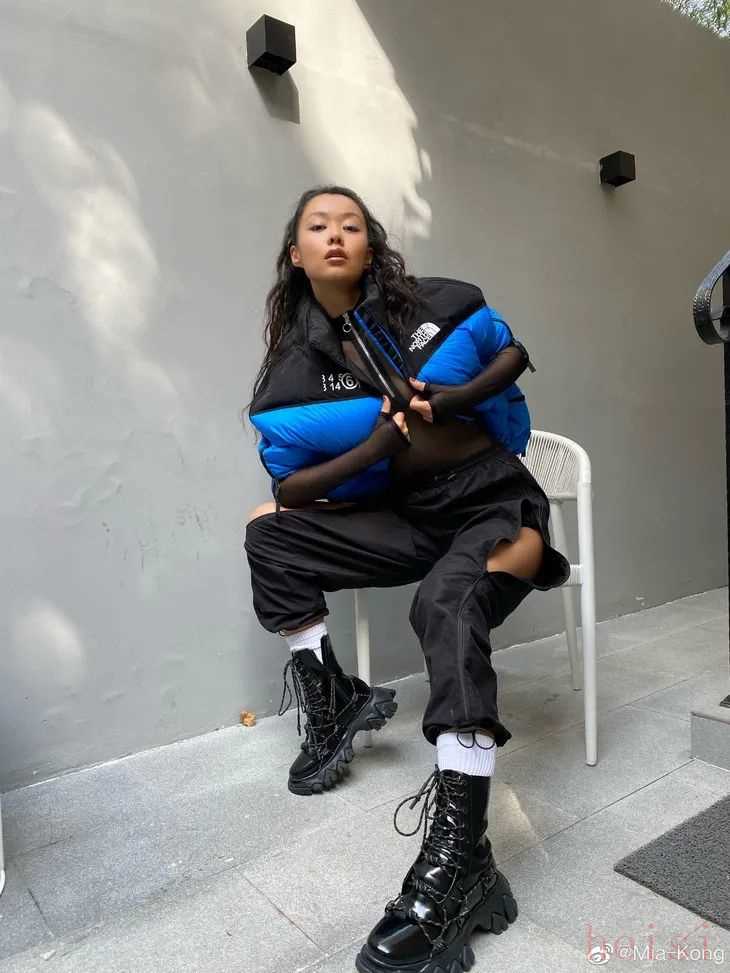 穿上羽絨服的楊冪也能化身酷女孩營業(yè)。黑白千鳥格圖案裝飾的面包服呈現(xiàn)出百變風(fēng)格,另一款MO&Co. × 032c獨(dú)家聯(lián)名系列則在運(yùn)動(dòng)與機(jī)能風(fēng)格之間完美平衡。