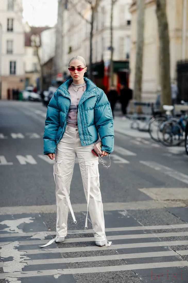 面包服的顏色挑選也不用局限。酷感妹子首選是黑色、熒光色,特別是帶有反光面材質(zhì)的裝飾更能在冬日里給人眼前一亮的效果。
