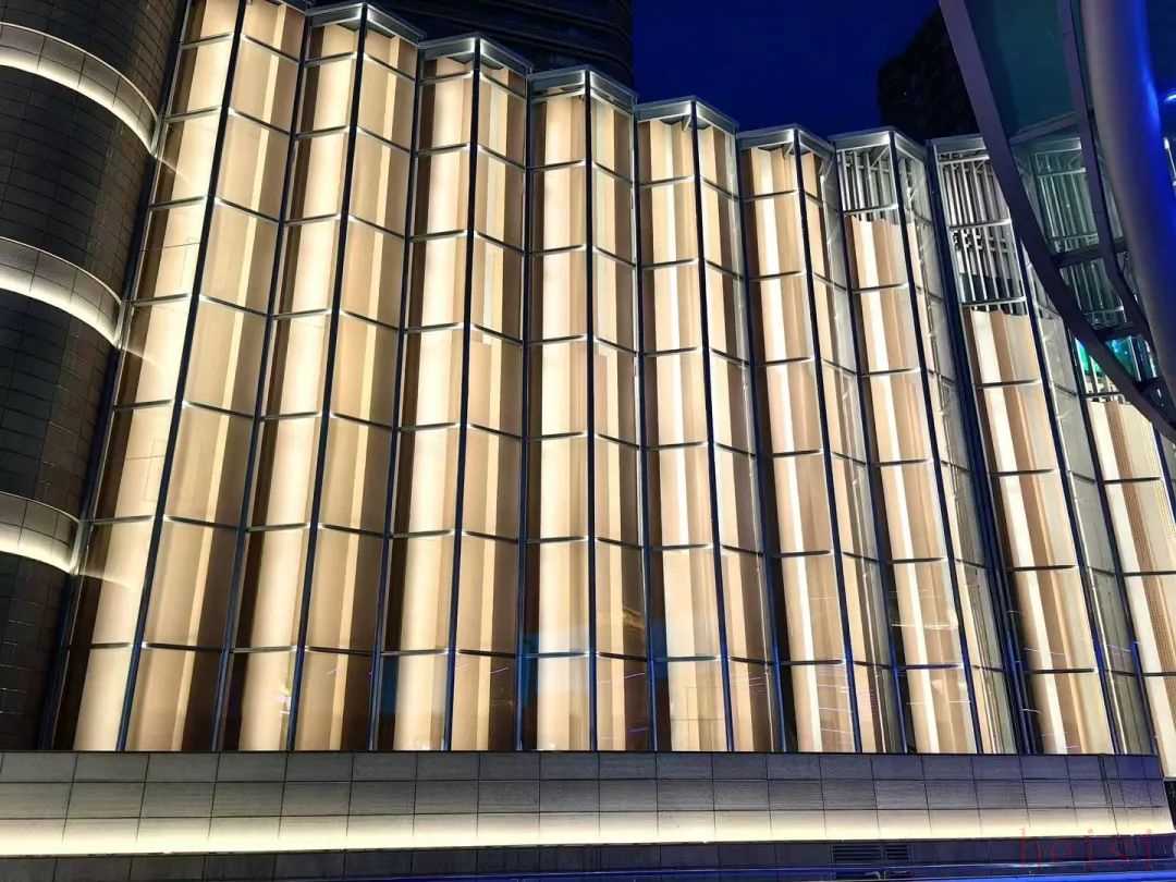 結(jié)合夜間泛光設(shè)計,改造后的立面好似一個“蘇州之眼”,可配合活動節(jié)日呈現(xiàn)不同的動態(tài)內(nèi)容,上部透光效果的鋁格柵也為蘇州天虹購物中心帶來了現(xiàn)代優(yōu)雅與未來潮流并存的氛圍。