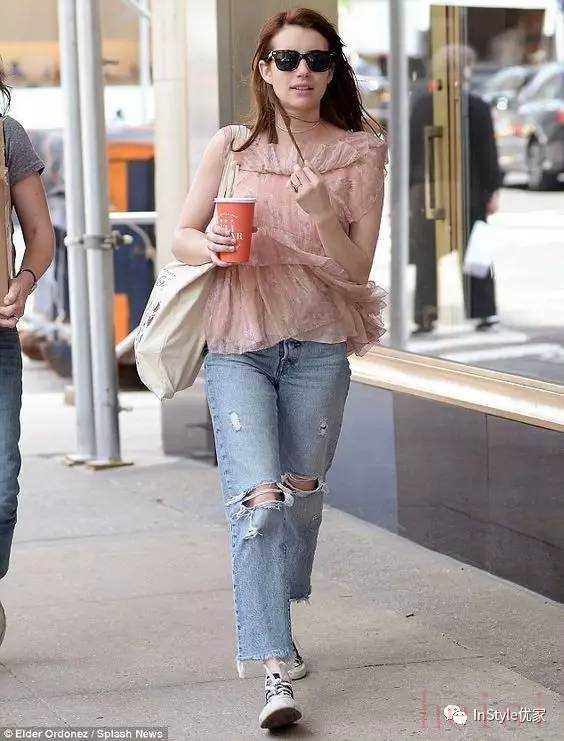 艾瑪·羅伯茨也超級鐘愛帆布包,在出街造型中總能看到它。