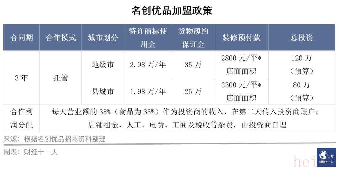 表:名創(chuàng)優(yōu)品最新加盟政策。來源:招商資料