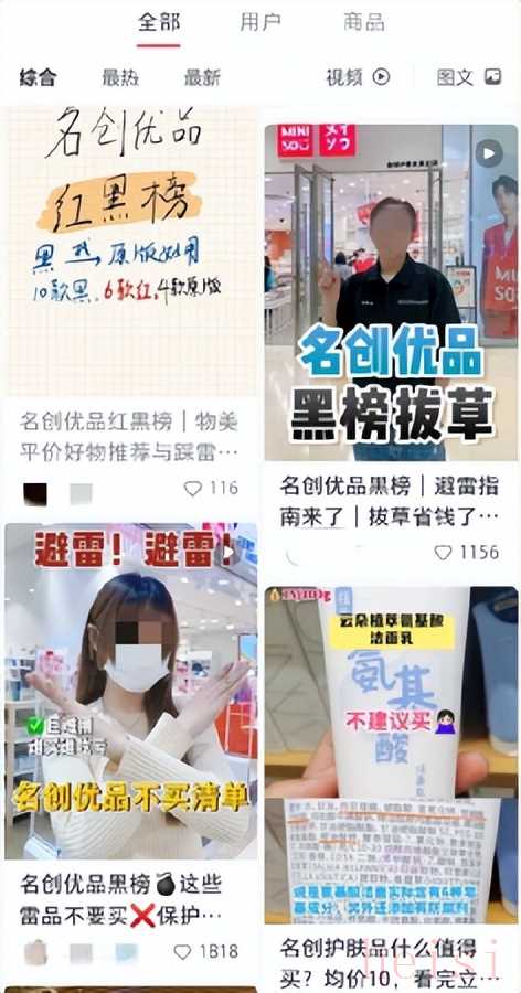 小紅書上的“名創(chuàng)優(yōu)品紅黑榜”